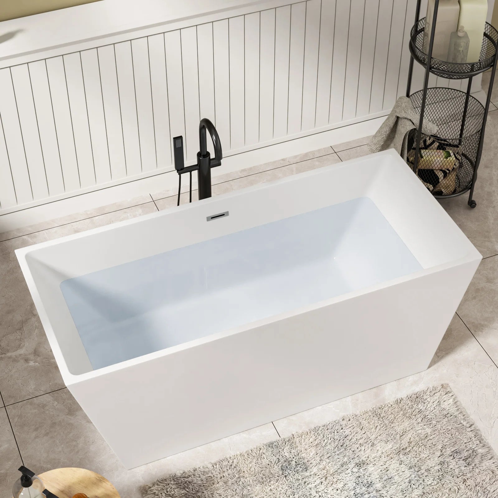 US Stock Modern Design Freestanding White Acrylic Rectangle-Shaped Bathtub with Drain Overflow