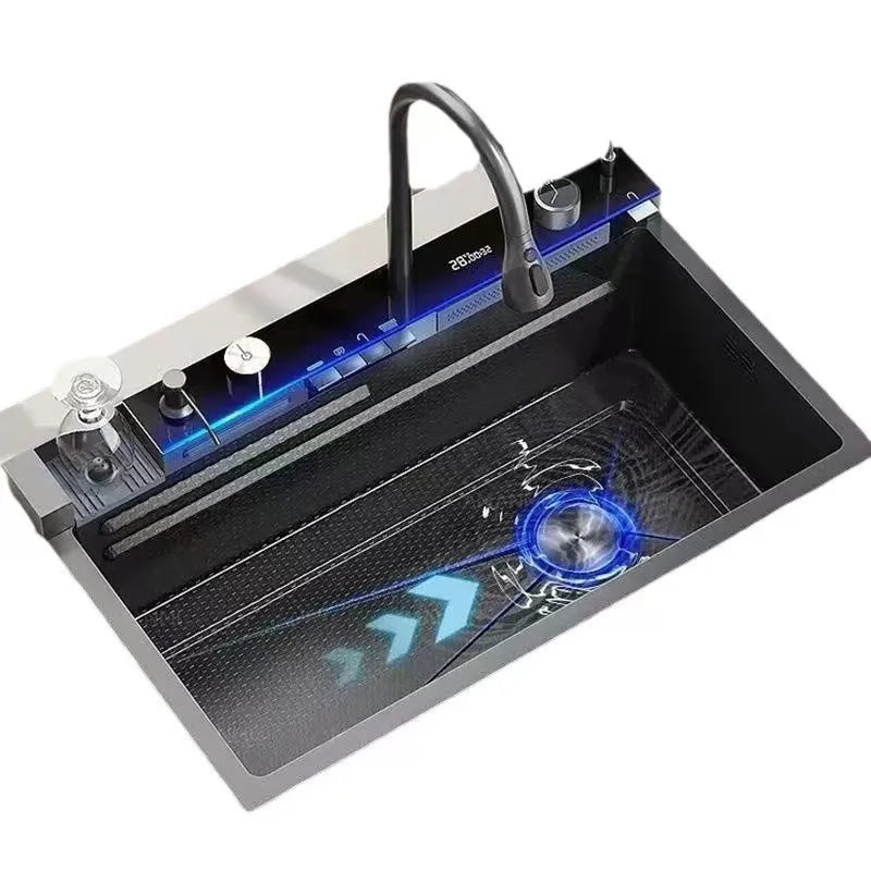 Modern Stainless Steel Waterfall Kitchen Sink – Single Bowl