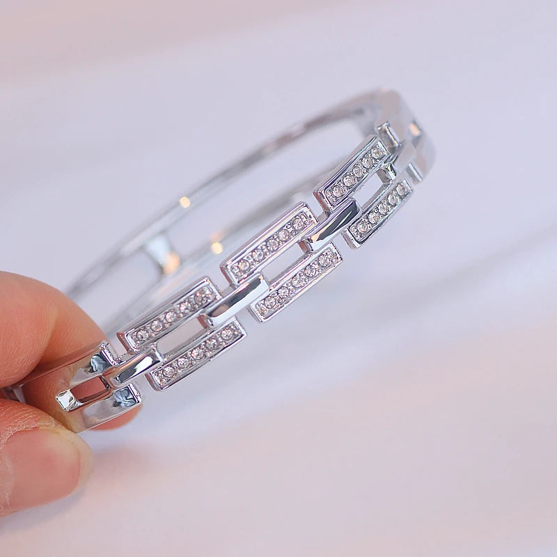 Rose Gold Women’s Bangle Bracelet – Elegant Crystal Cuff