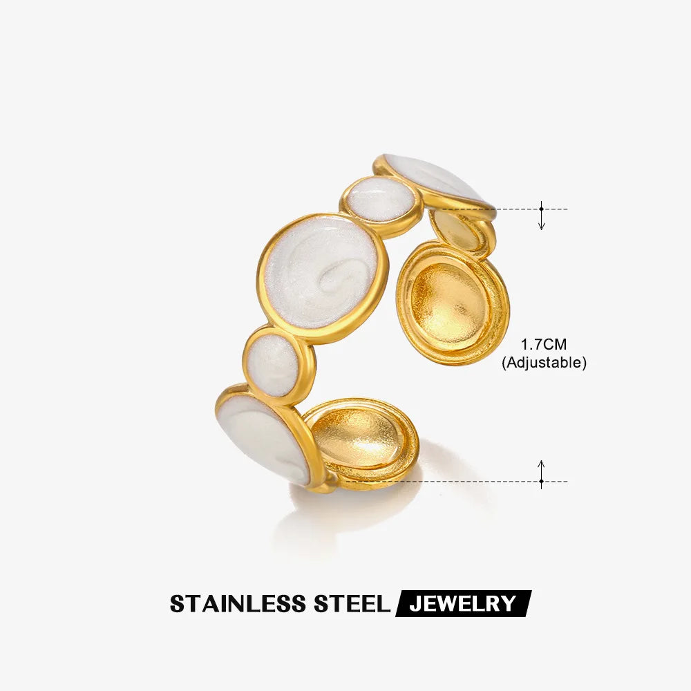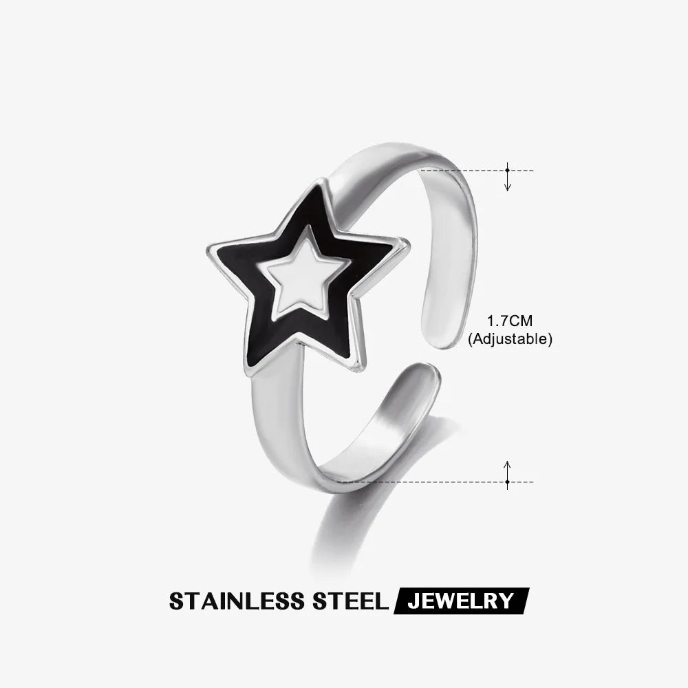 Stainless Steel White Black Enamel Rings for Women Gold Color Heart Star Geometric Open Rings Fashion Jewelry Gift Wholesale