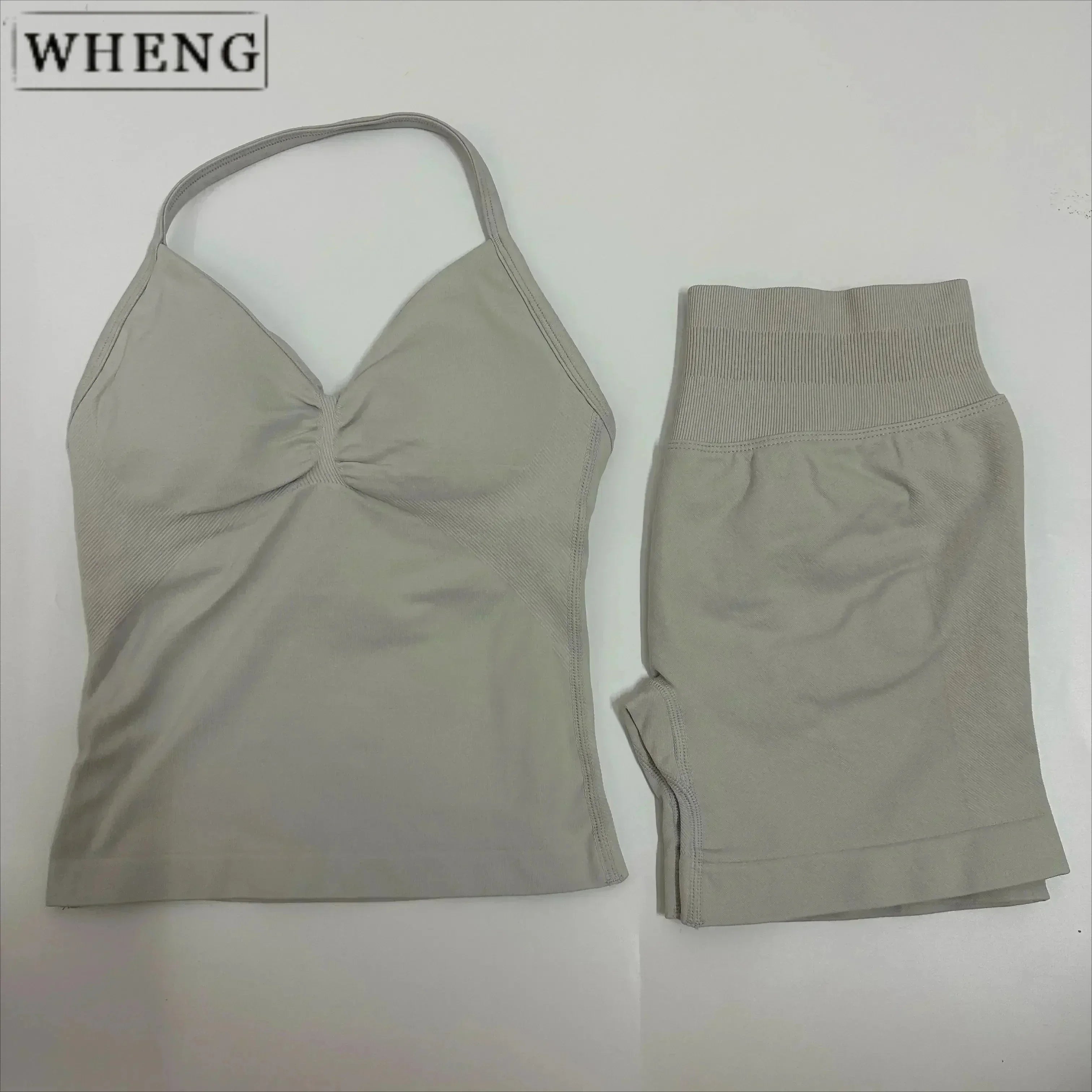 Summer fitness shape beautiful shoulder straps chest pillow bra and yoga shorts a must for fitness.