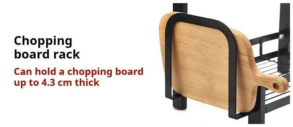 Keep your kitchen tidy and organized with this multifunctional stainless steel storage rack. Designed as a 2-layer over-the-sink organizer, it holds dishes, bowls, chopsticks, knives, spoons, and even cutting boards. Its sleek black finish and durable stainless steel construction make it both stylish and long-lasting. With draining capability and multiple compartments, this rack is the perfect all-in-one solution for efficient kitchen organization.
