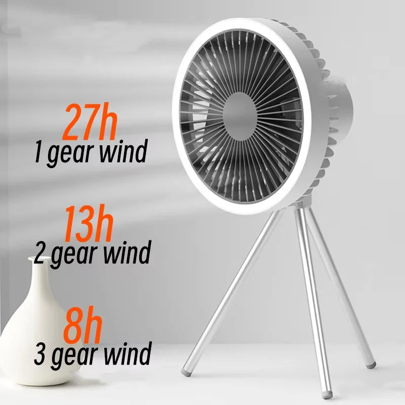 Rechargeable Camping Fan with LED Light – Portable 10000mAh