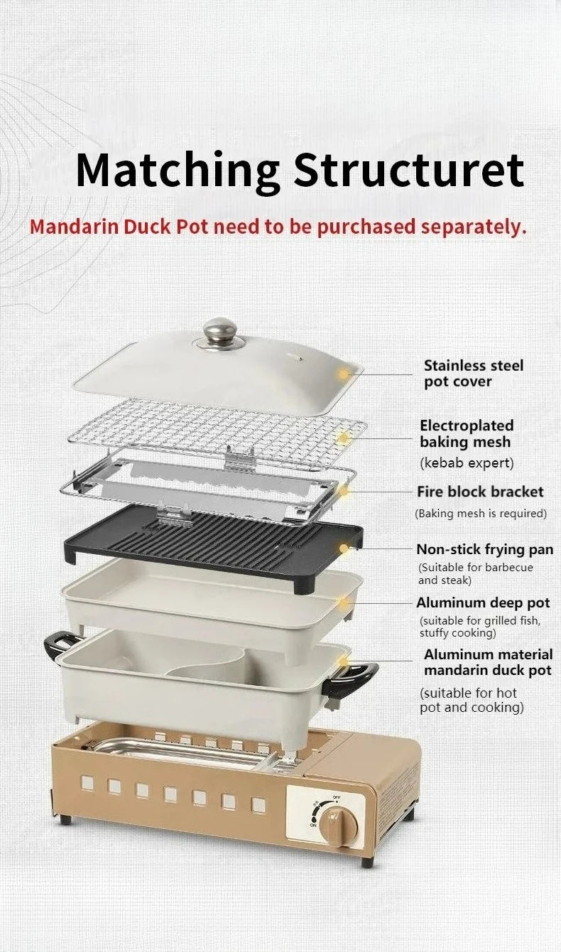 • Accessories: Stove Body / Frying Pan / Baking Net / Fire Baffle Bracket