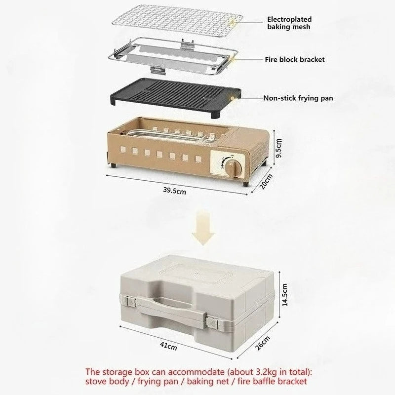 • Complete Accessories: Includes stove body, frying pan, baking net, and fire baffle bracket.