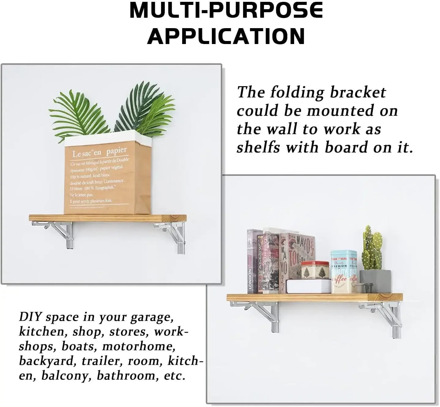 2pc Folding Shelf Brackets Heavy Duty Stainless Steel DIY Wall Mounted Collapsible Furniture Space Saving for Garage Workstation
