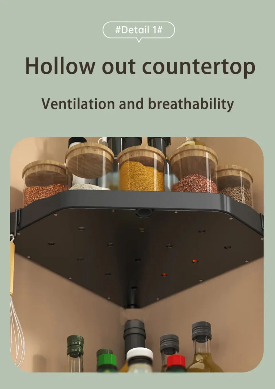 Keep your kitchen neat and organized with this 3-tier seasoning shelf and spice rack. Designed to fit conveniently on countertops or in corners, it provides plenty of space for spices, sauces, and tableware while also including a chopstick and utensil organizer. Built with strong load-bearing capacity and an eco-friendly design, this multifunctional rack is easy to clean and helps you maximize storage space in style. Perfect for kitchens of any size, it keeps essentials accessible and tidy.
