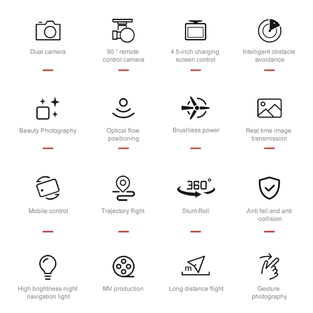 • Special Features: App-controlled, 4.5” screen, brushless motor, dual camera