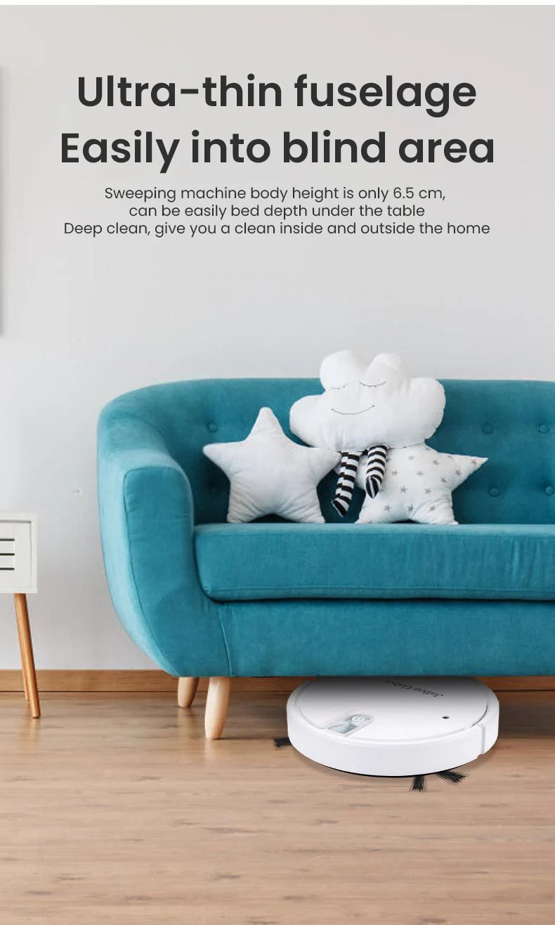 Keep your home spotless with the 5-in-1 Wireless Smart Robot Vacuum Cleaner. This multifunctional device offers vacuuming, sweeping, mopping, humidifying, and quiet operation, making it perfect for daily home cleaning. Compact and super quiet, it navigates your floors efficiently while maintaining a clean and comfortable environment. Ideal for busy households, this smart appliance simplifies cleaning and adds convenience to your routine.