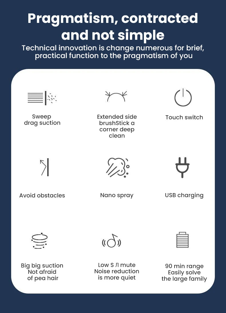 • 5-in-1 Multifunction – Vacuuming, sweeping, mopping, humidifying, and more.