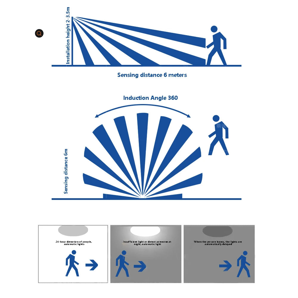 • Smart PIR Motion Sensor – Automatically turns light on/off when movement is detected.