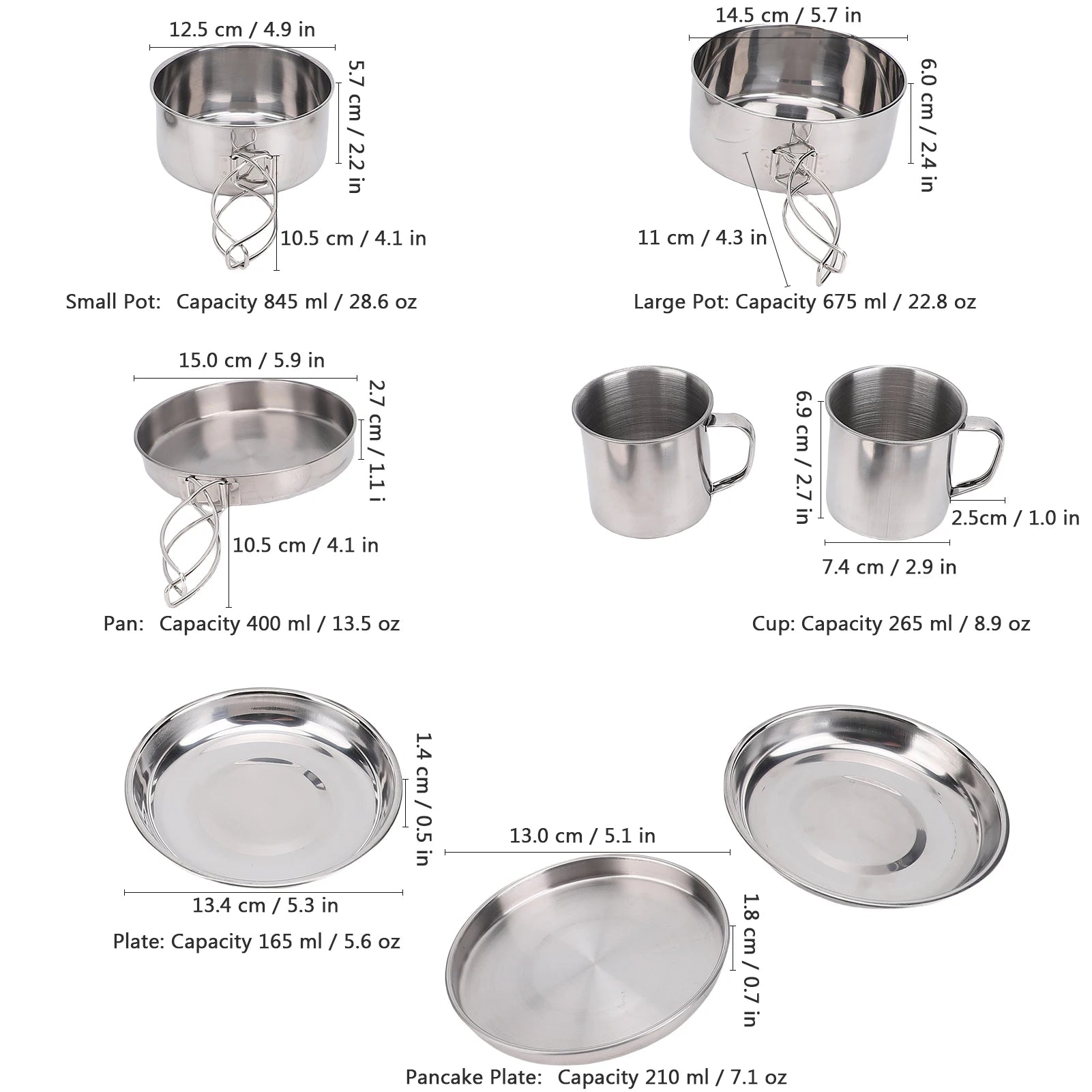 Camping Cookware Set 4–5 Person Stainless Steel Set