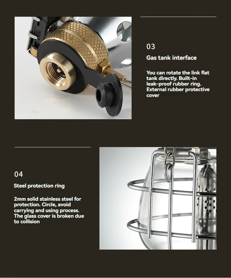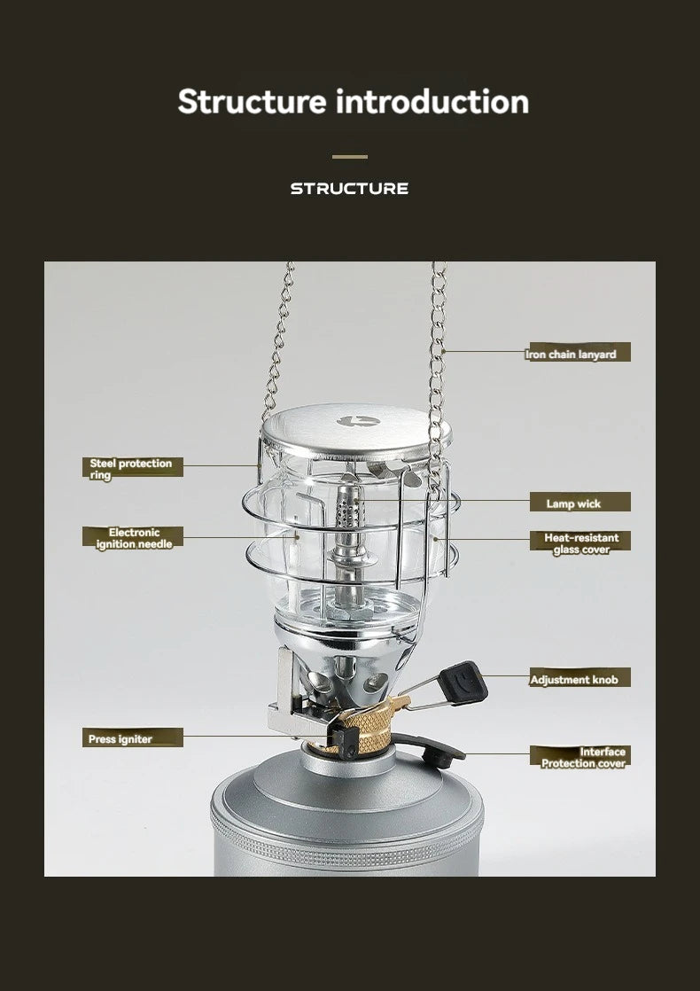 • Gas-Powered Lantern – Provides consistent illumination