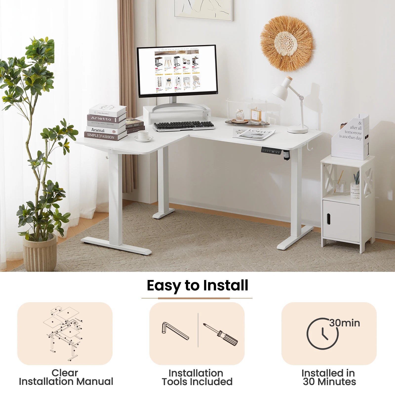 Work smarter and healthier with this Electric L-Shaped Sit Stand Desk, designed for modern offices, schools, and home workspaces. Featuring height-adjustable legs with 4 programmable memory controls, it lets you easily switch between sitting and standing positions for improved comfort and productivity.