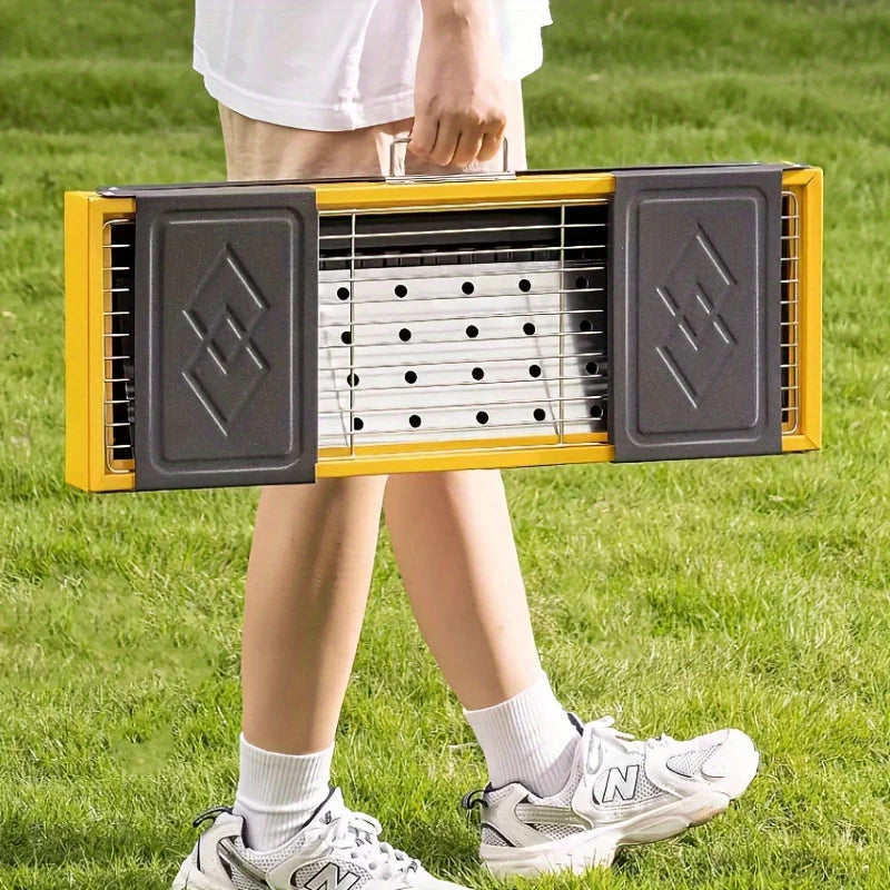 Enjoy outdoor cooking anywhere with this Foldable Portable Camping Barbecue Grill. Designed for camping, courtyard parties, picnics, and backyard gatherings, this charcoal grill is lightweight, easy to carry, and simple to set up. The extended side table board provides extra space for food preparation, making grilling more convenient. Perfect for outdoor enthusiasts who love tasty BBQ on the go.
