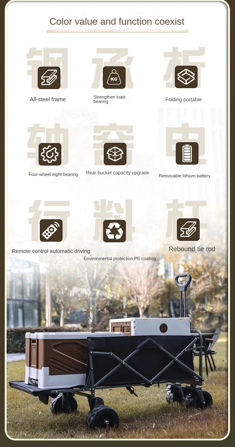 Make outdoor adventures easier with this Electric Camping Cart, designed for carrying tents, gear, and supplies with ease. Built with a durable metal frame and four-wheel design, this foldable utility wagon ensures stability and strength on various terrains.