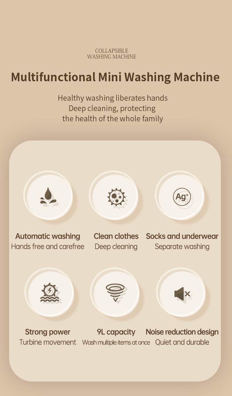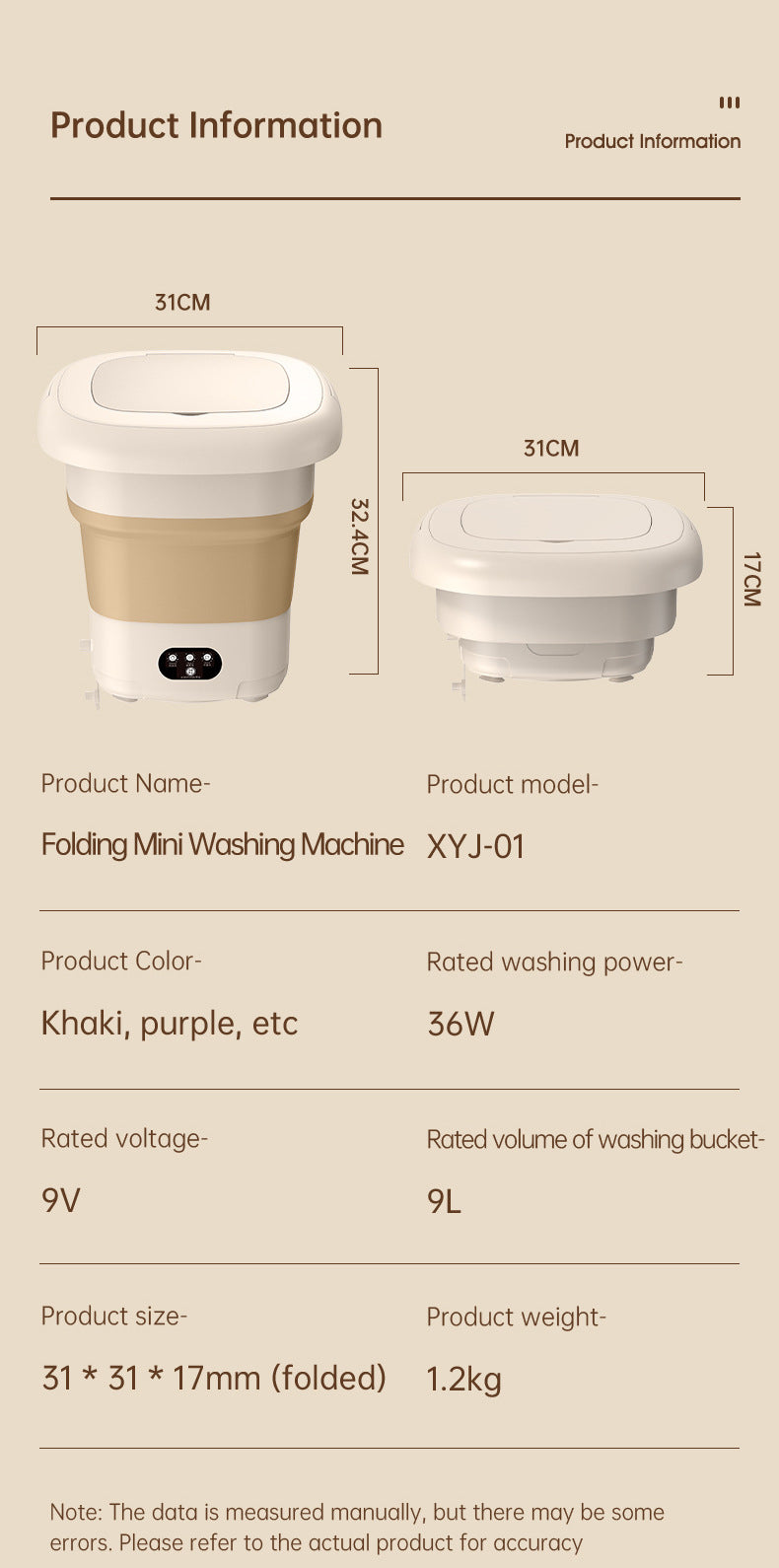 • Type: Compact foldable washer for clothes, underwear, and travel laundry