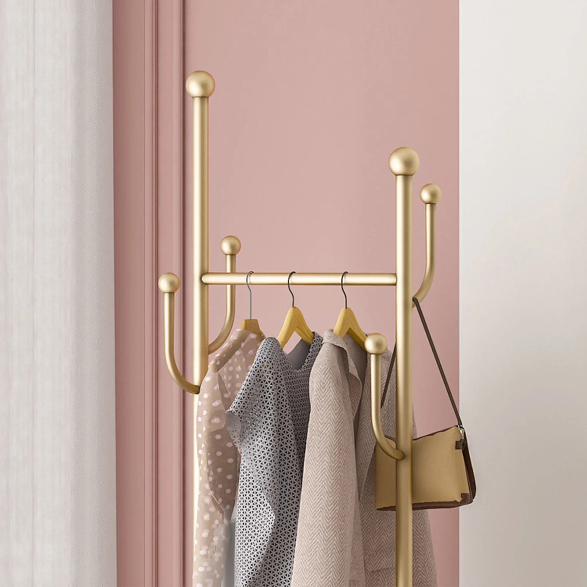 Gold Freestanding Metal Coat Rack with 6 Hooks