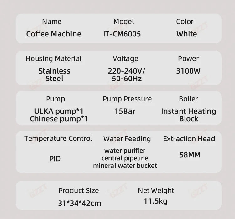 • Product Name: GZZT CM6005 Commercial Espresso Machine