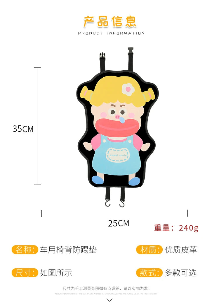 Keep your car seats clean and stylish with the Leather Car Seat Back Protector Kick Pad. Made from durable, waterproof leather, this protective cover prevents dirt, scratches, and wear caused by kids’ kicks or daily use. With a cute cartoon design, it adds a fun touch while protecting your car interior. Easy to install and clean, it’s perfect for families on the go.
