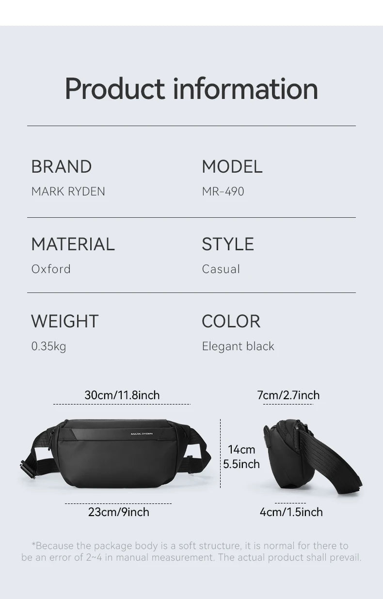 The Mark Ryden EasePack Sling is your perfect daily companion for travel, work, or casual outings. Designed with premium Oxford material, a soft leather touch, and durable nylon lining, this versatile crossbody messenger bag offers comfort, functionality, and modern style for both men and women.
