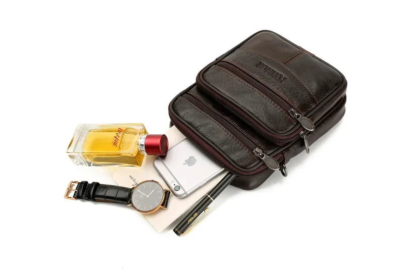 Carry your essentials in timeless style with the Retro Genuine Leather Men’s Shoulder & Belt Bag. Crafted from high-quality genuine leather, this vintage-inspired crossbody bag offers both function and fashion with a soft yet durable finish. Designed for versatility, it can be worn as a shoulder bag, messenger bag, or belt pack, making it ideal for daily use, travel, or casual outings. With multiple interior compartments, zipper pockets, and phone storage, it provides ample space while maintaining a compact, stylish look.