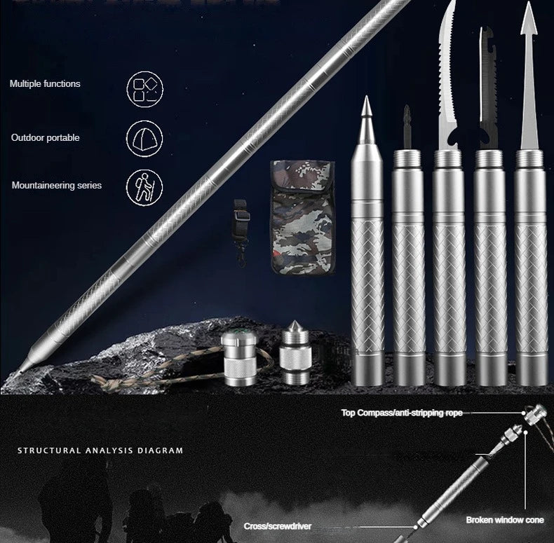 Outdoor Mountaineering Stick Multi Functional Self Defense Stick Car Mounted Tactical Mountain Camping Supplies Set Tools