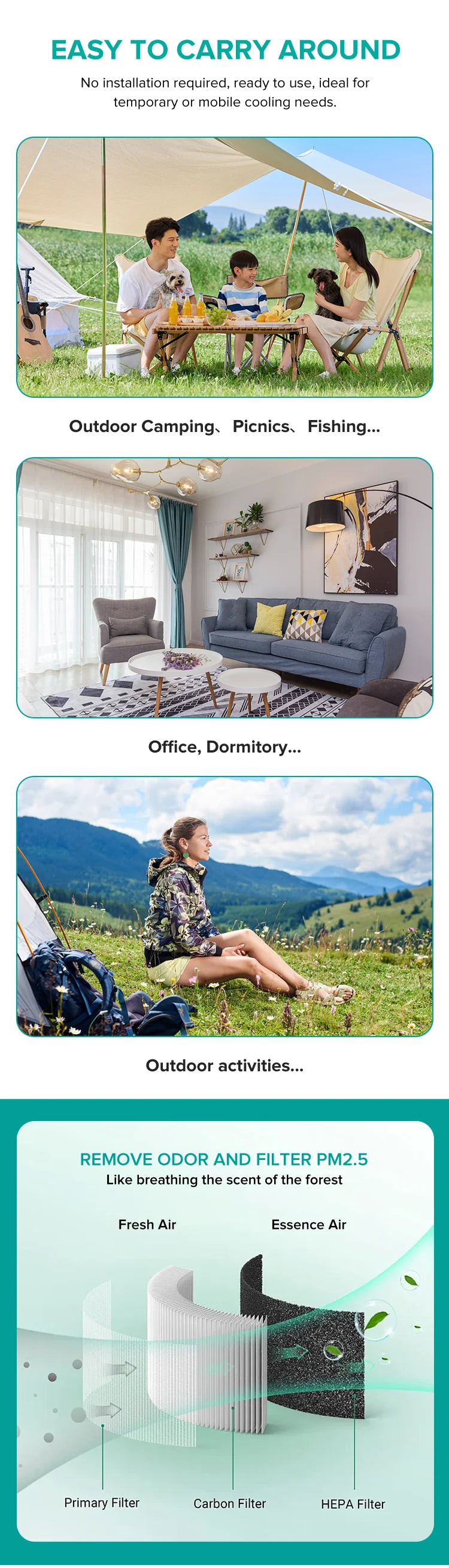• 6000BTU Cooling Power – Delivers efficient cooling for outdoor and indoor use