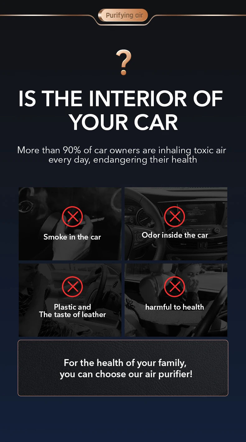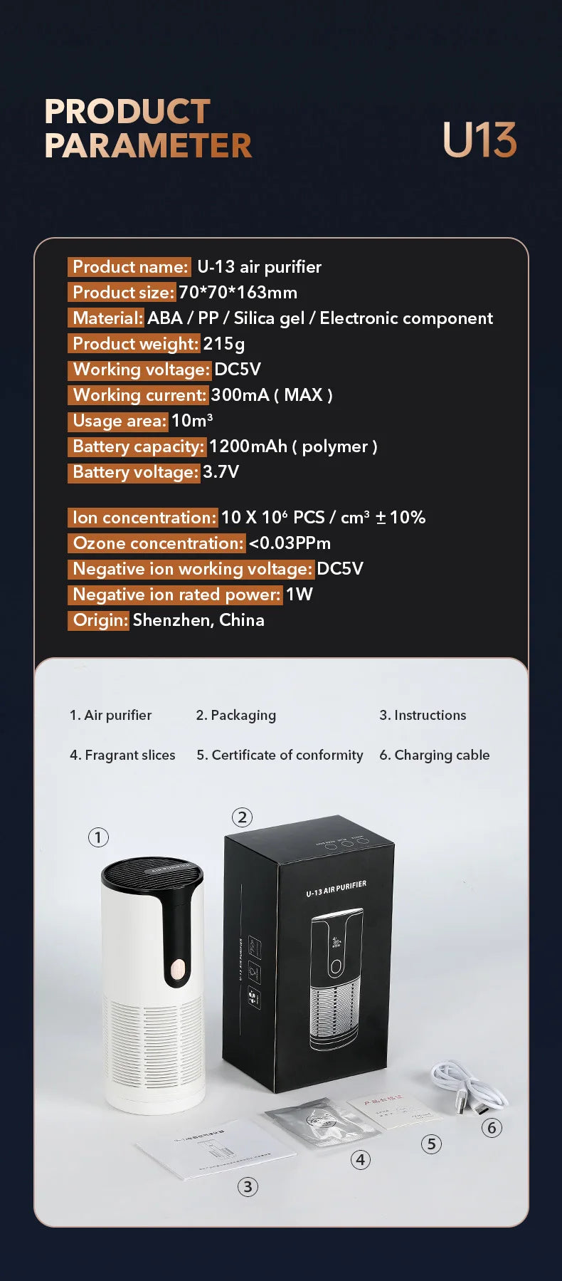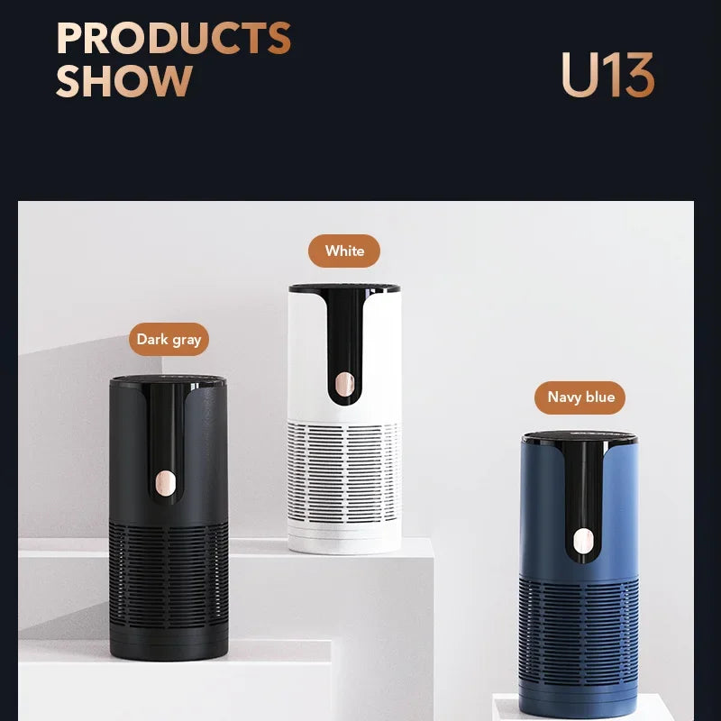 Breathe fresh wherever you go with this Portable Car Air Purifier. Featuring a high-density negative ion generator, it removes smoke, odors, formaldehyde, and benzene efficiently. Compact and battery-powered, it operates quietly while purifying the air in cars, bedrooms, or small offices for a cleaner, healthier environment.