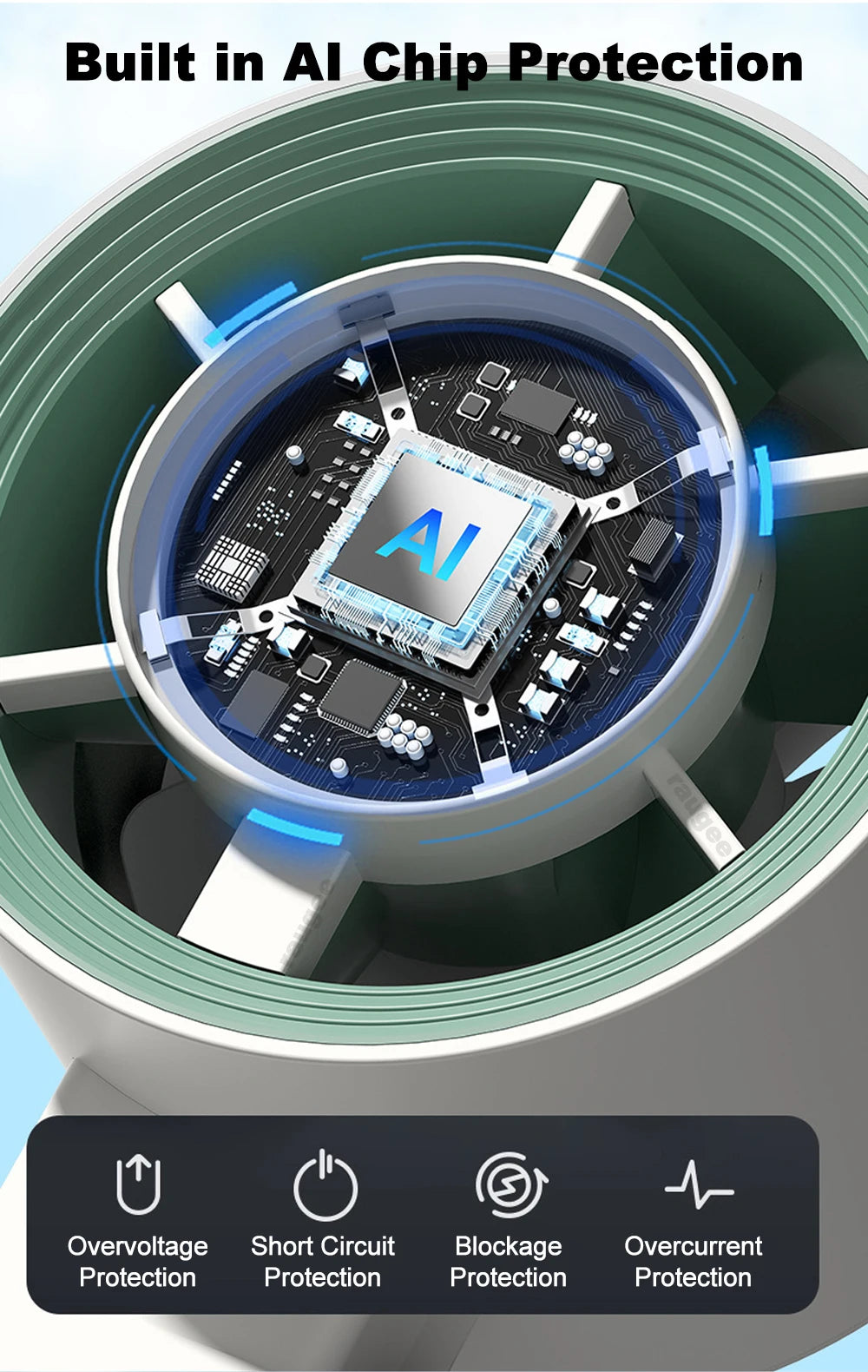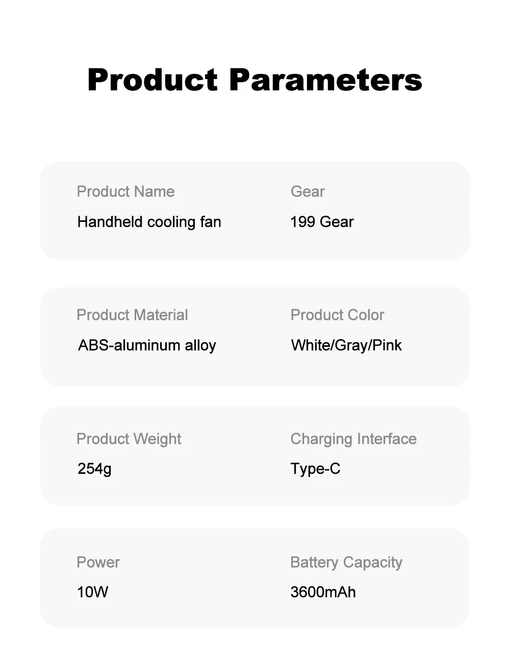 Portable Handheld Turbo Fan Foldable Hanging Neck Fan Mini Hand Fan 3600mAh USB Rechargeable High Speed Ice Cooling Turbo Fan