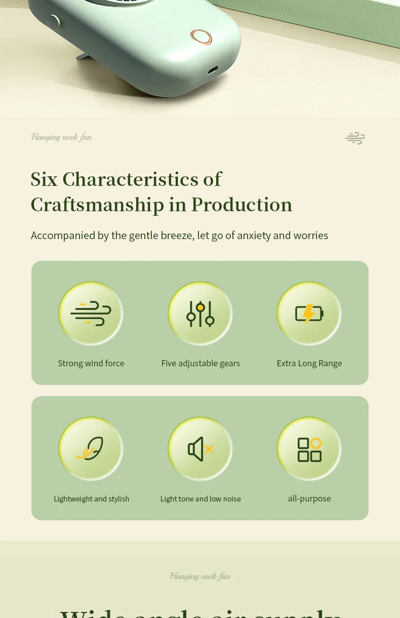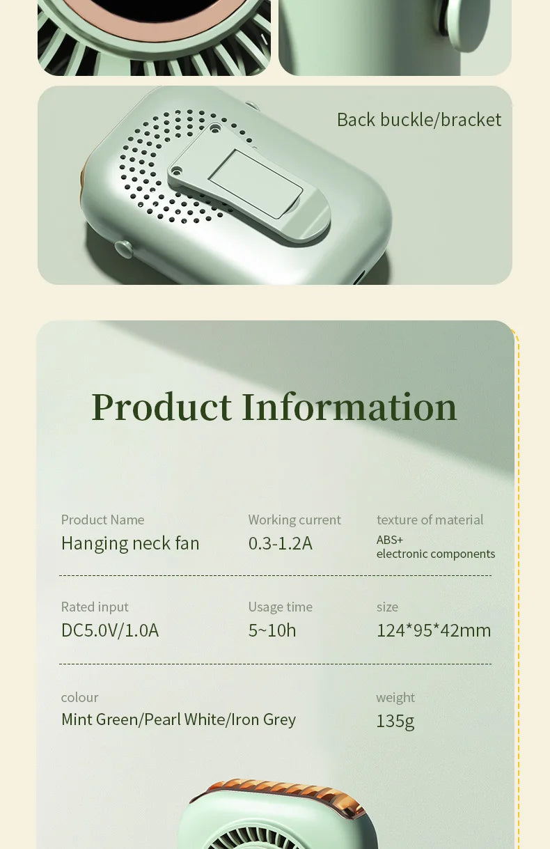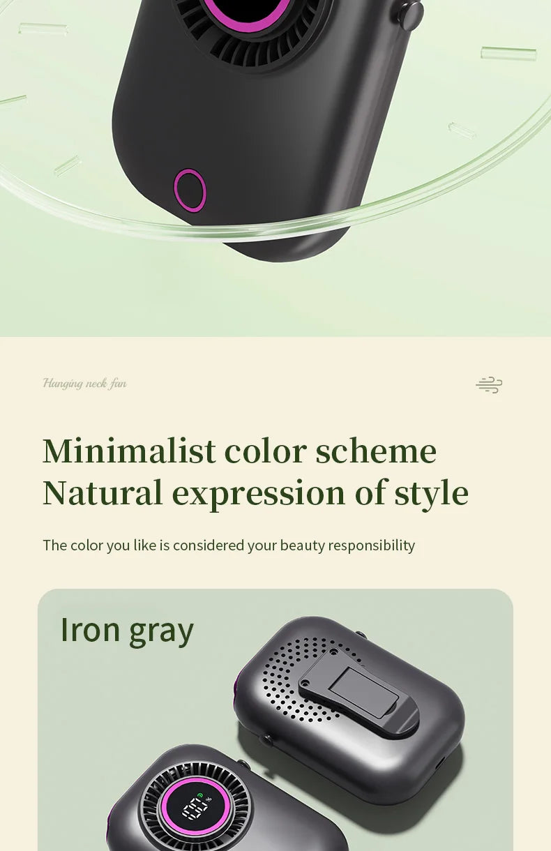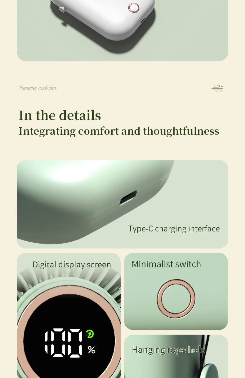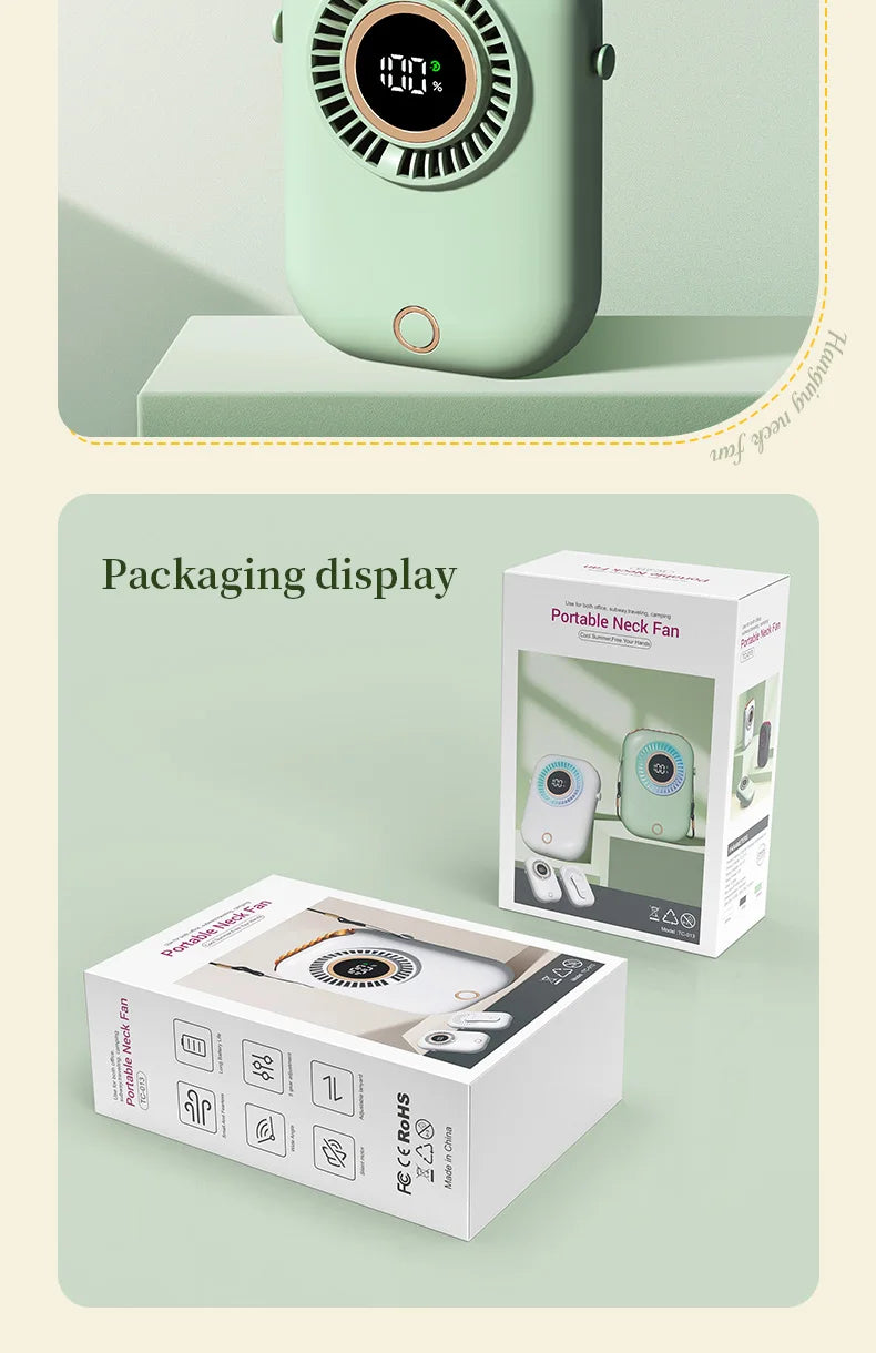 Lightweight and USB-powered, it ensures long-lasting performance while the hands-free design keeps you refreshed on the go. With its quiet operation, modern look, and eco-friendly low power consumption, this wearable neck fan is a must-have cooling companion for summer.