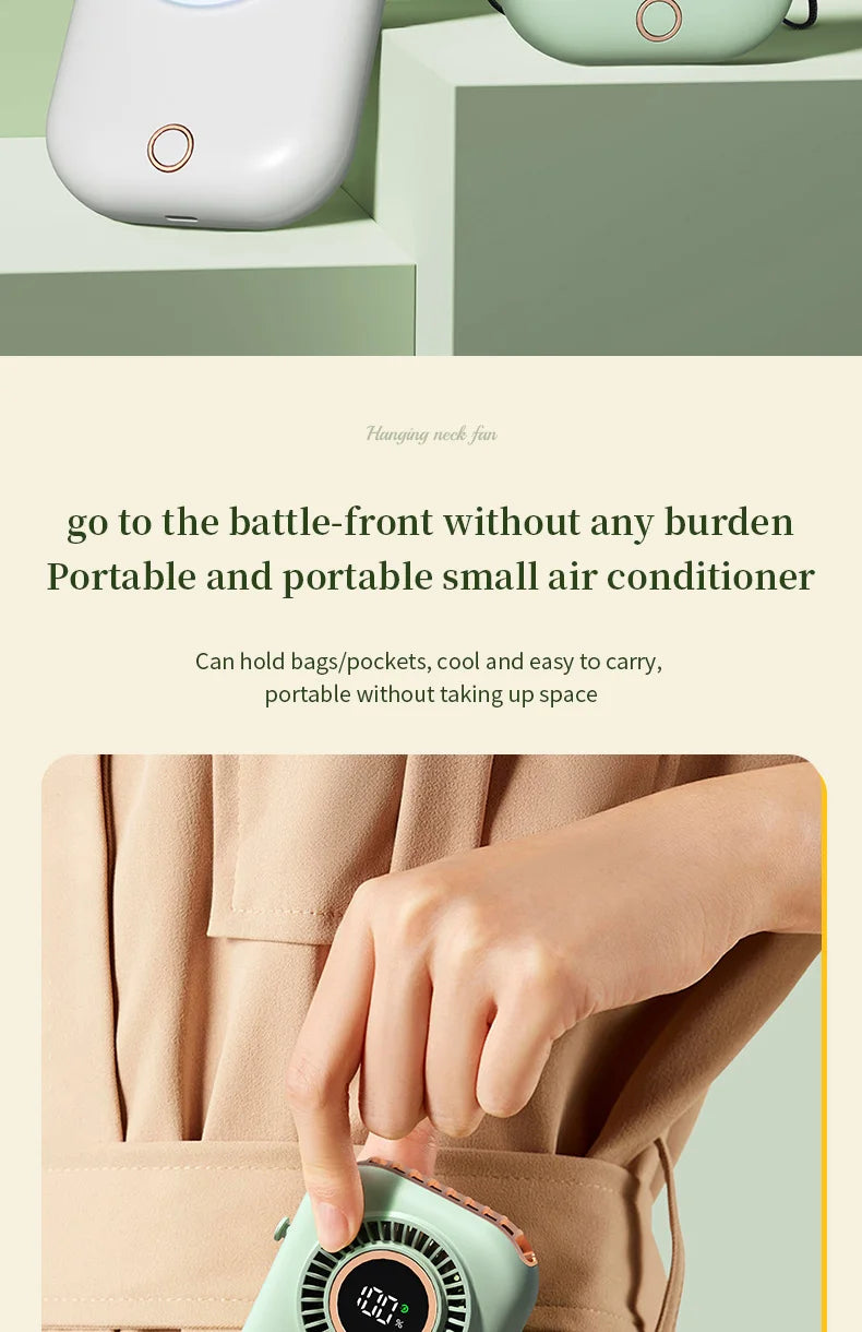 Stay cool and stylish anywhere with this colorful hanging neck fan featuring an intelligent digital display and atmospheric LED lighting. Designed for convenience, this portable fan provides five adjustable wind speeds for customized comfort, making it perfect for outdoor activities, travel, sports, or home use.