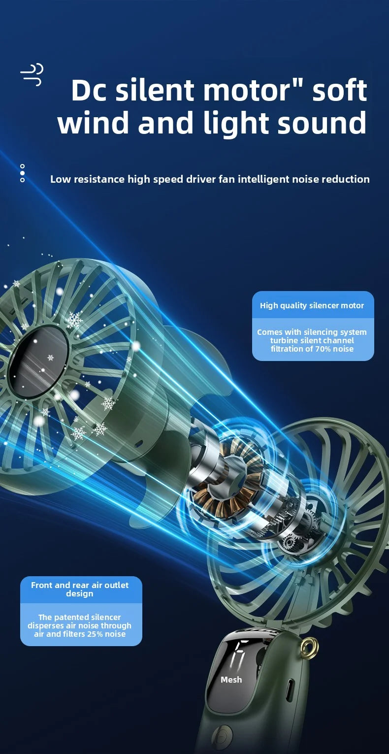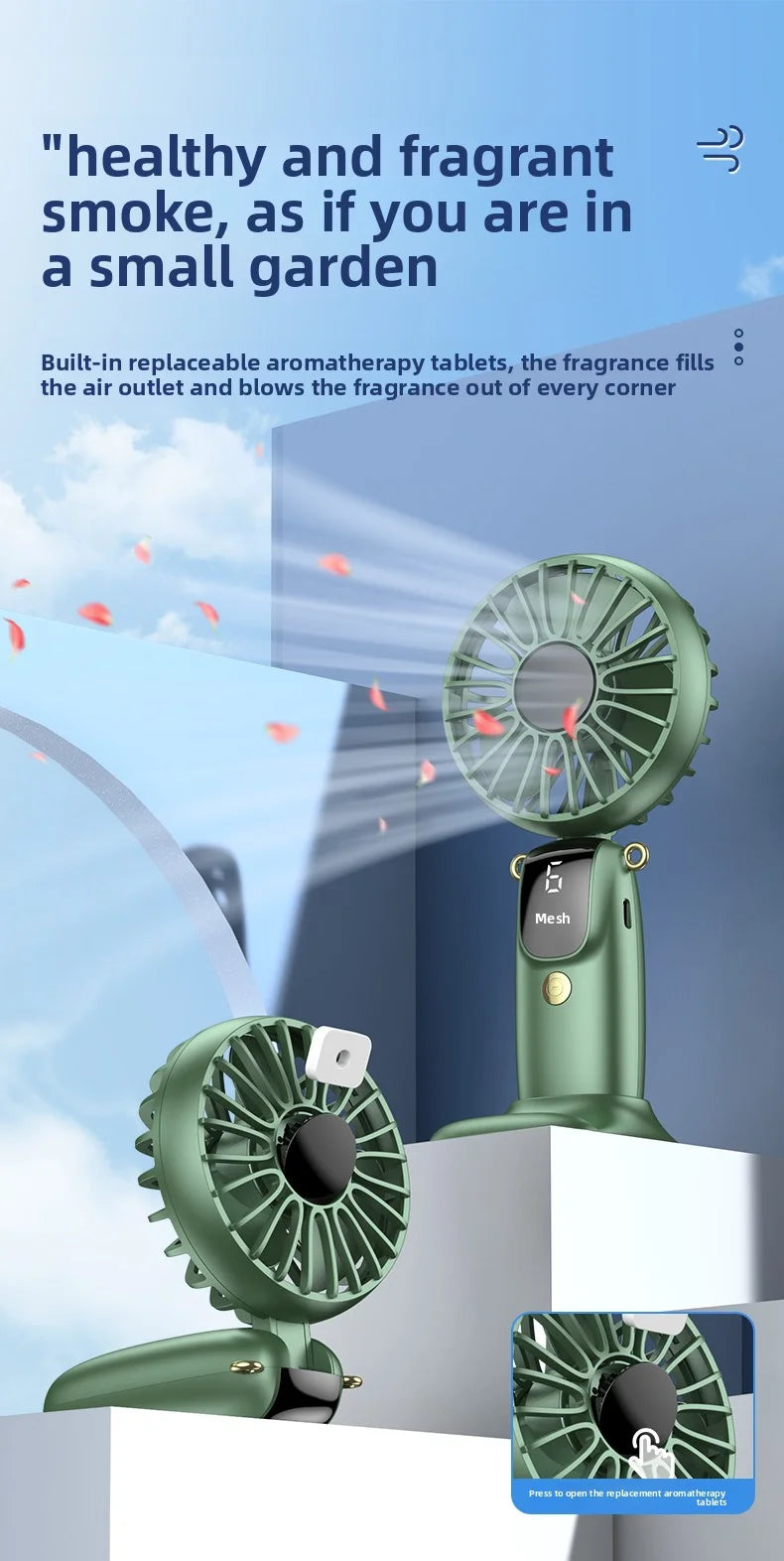 Portable Mini Handheld Neck Hanging Fan USB Rechargeable Battery Foldable Phone Holder with Aromatherapy for Car Home Office