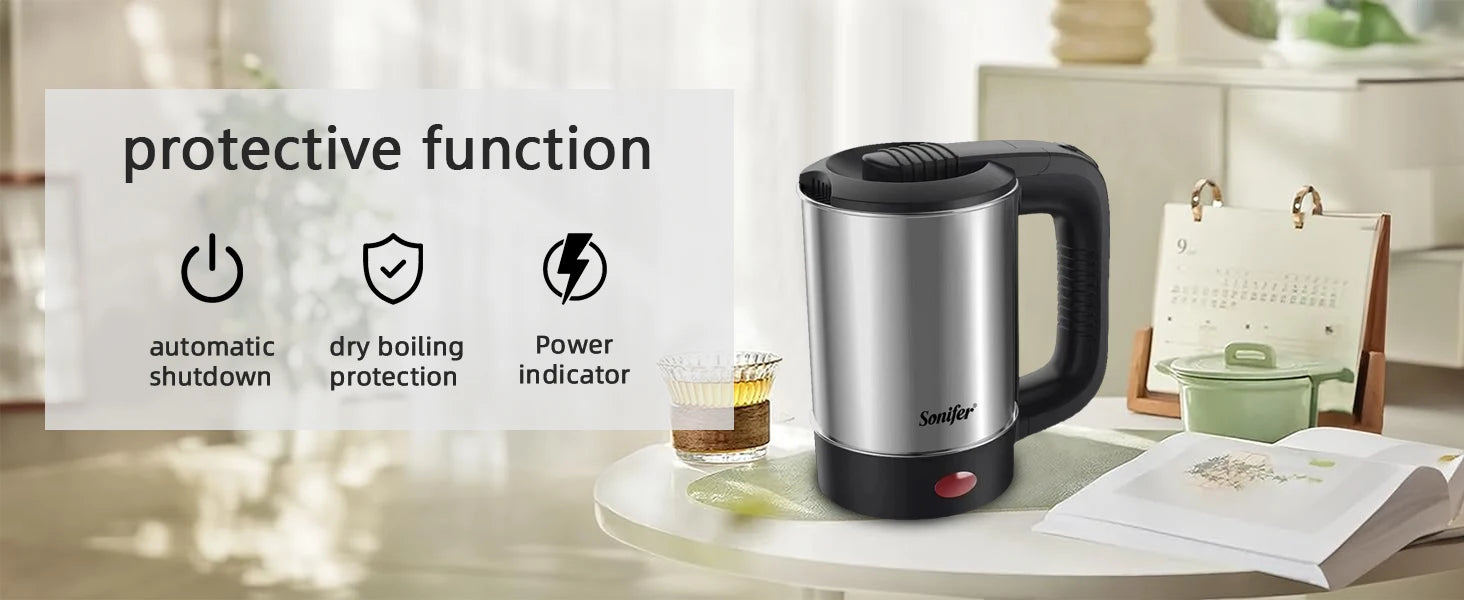 Portable Travel Electric Kettle, Mini Tea/Coffee Pot,Compact & Durable. Perfect for Travel