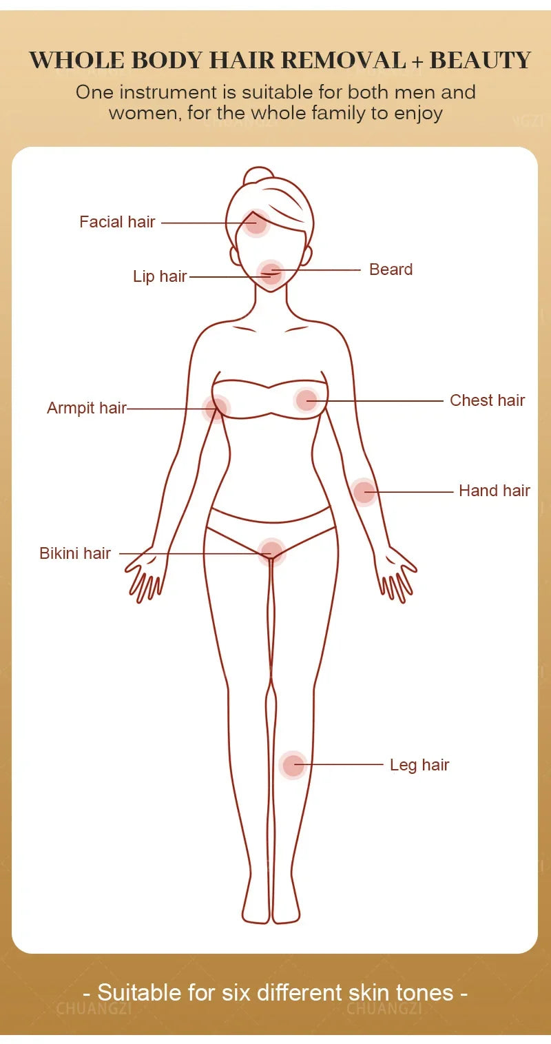 Feature: Skin Tightening, Other, Whitening, Hair Removal, Pigmentation Correctors,Hair Removal, Skin Rejuvenation