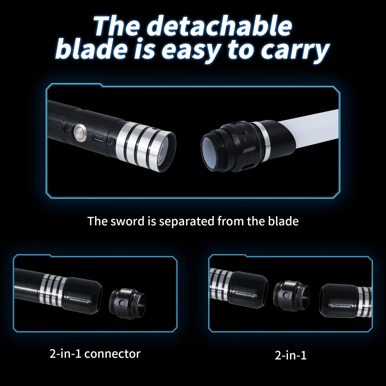 Rechargeable Light Sword, Upgraded Version 7 Colors Metal Handle, 1800mAh 18650 Series Lithium Battery, Aluminum Alloy Material, 2-in-1 with 3 Sound Effects, Light Grey, Black, Golden, Silvery Grey, USB Charging, ≤36V Opera