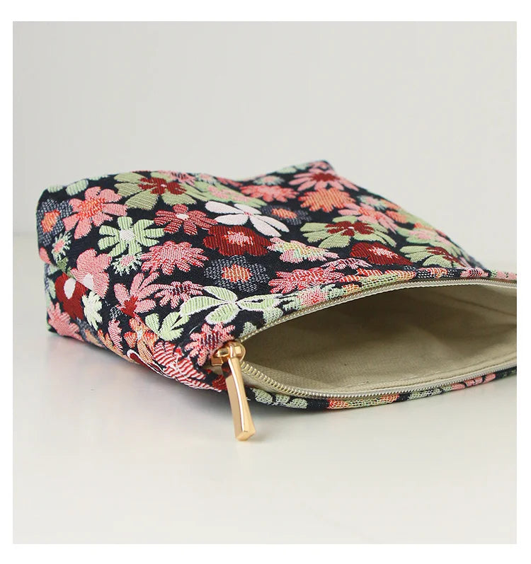 Red Flower Women's Cosmetic Bag, Small Portable Travel Toiletry Bag, Simple Cosmetic Storage Bag, Inner Tank Bag, Coin Purse