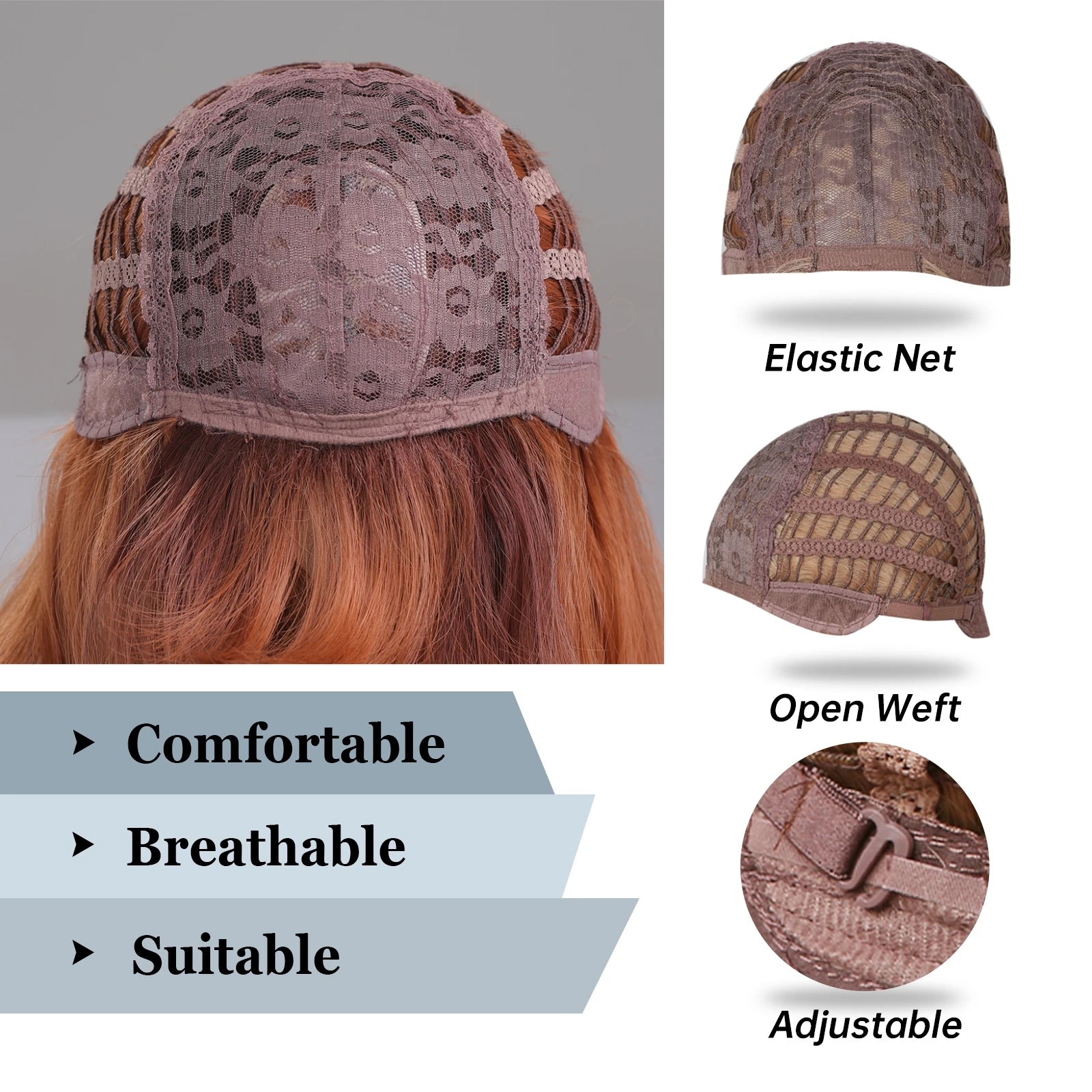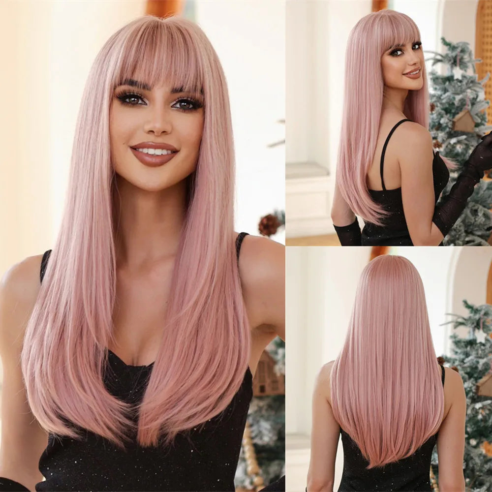 Reddish Brown Straight Layered Synthetic wig with Bangs Long hair Copper Ginger Wig for Women Daily Use Heat Resistant Wigs