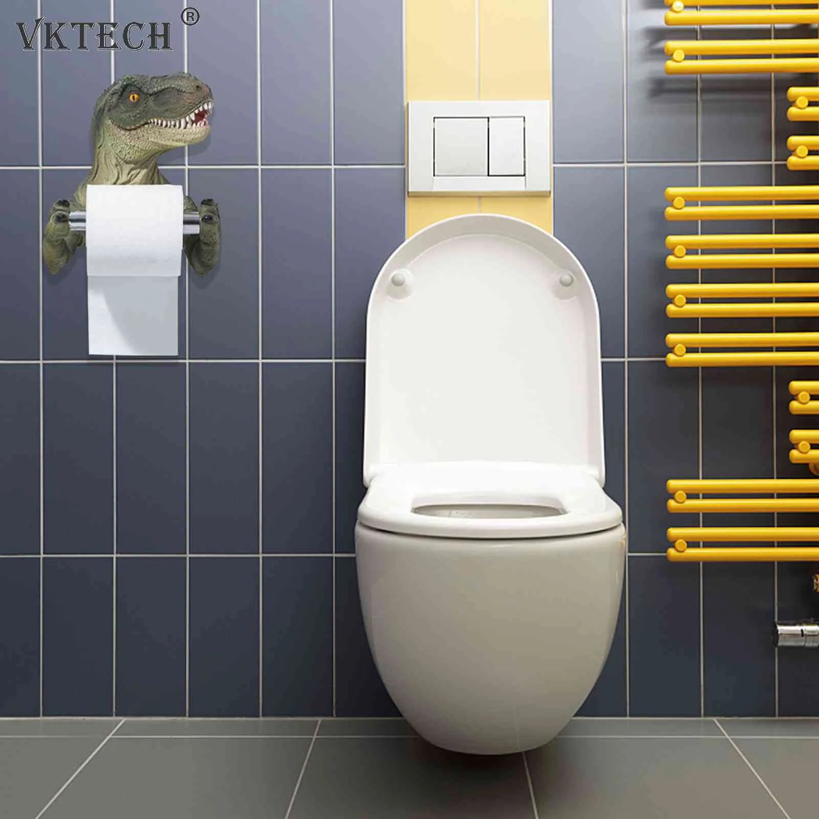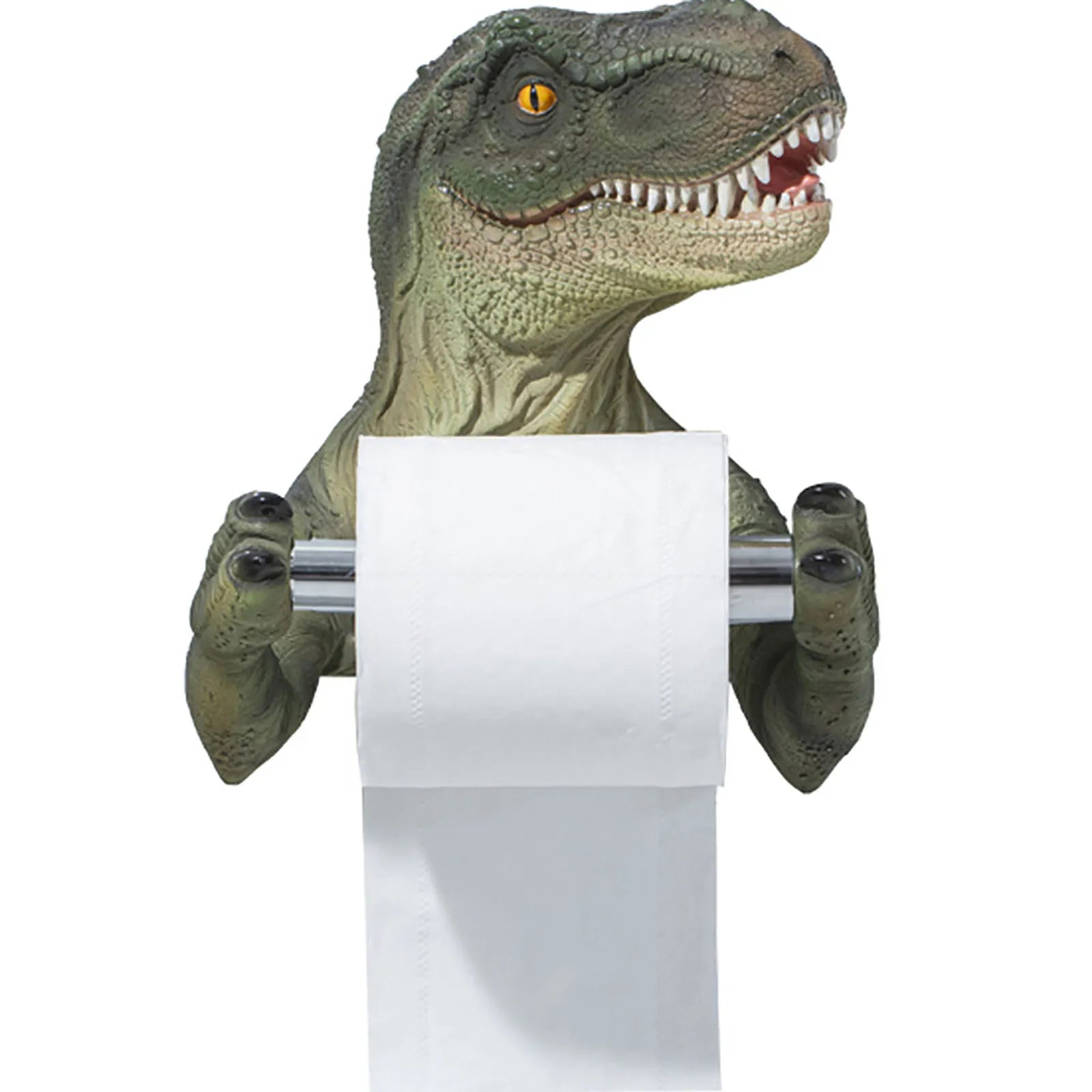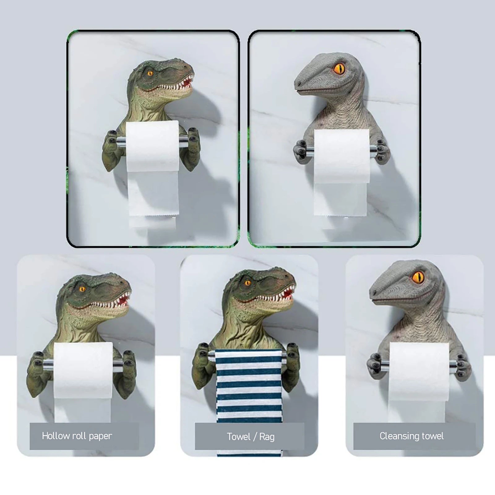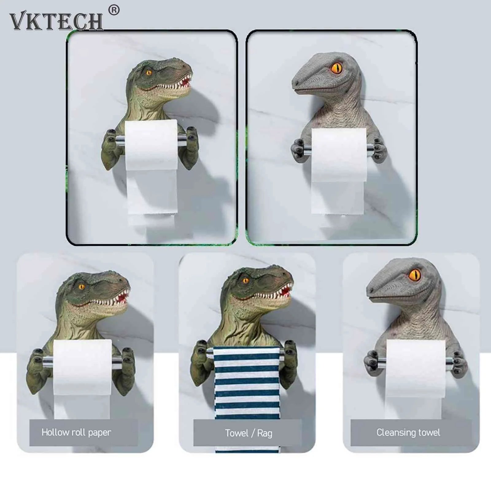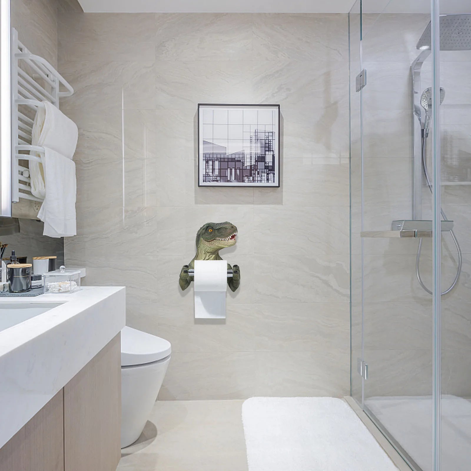 Resin Dinosaur Toilet Paper Holder WC Tissue Rack Punch-free Shelf Bathroom Wall-mounted Tissue Rack Roll Paper Hanger Rack for