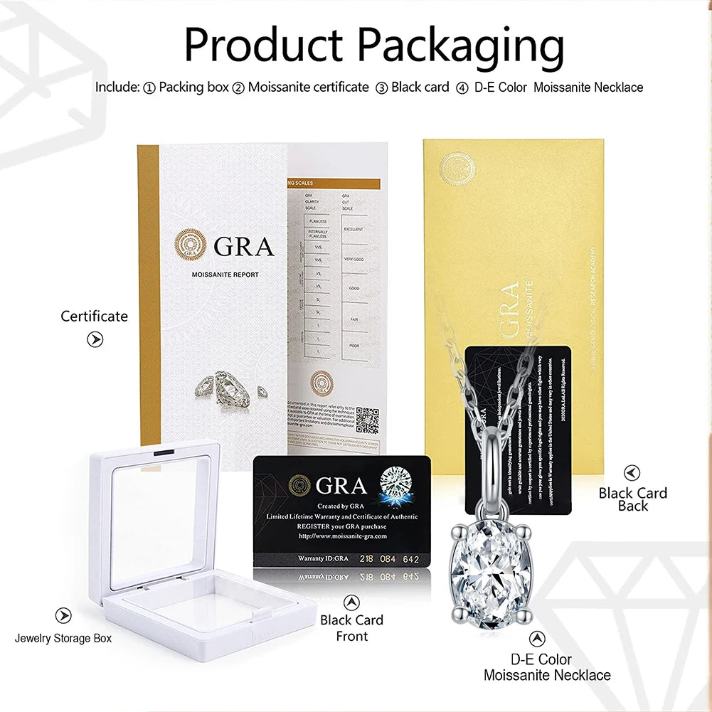 RINNTIN BSMN30 Moissanite Pendant Necklace Set Oval Cut Diamond Sterling Silver Necklace Set for Women