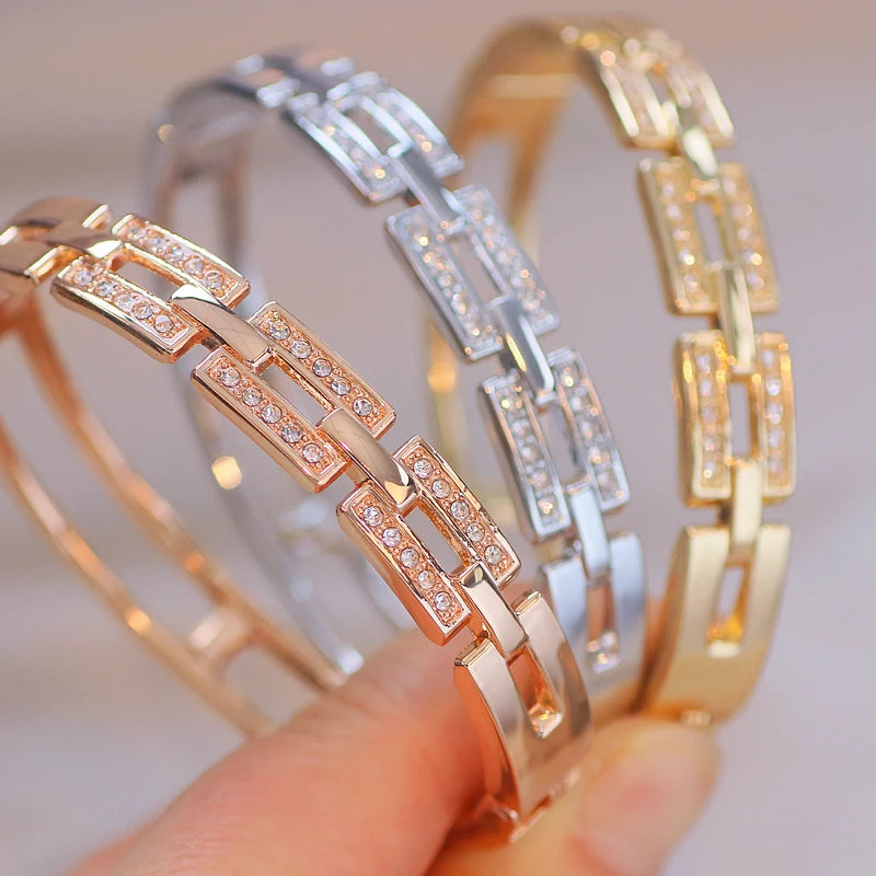 Rose Gold Women’s Bangle Bracelet – Elegant Crystal Cuff