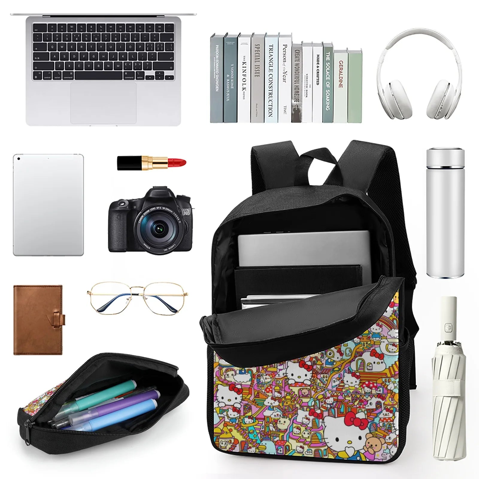 School Bag Printed Book Bag School Bags Boys 17 Inch Pencil Case School Backpack Lunch Bag Hello Kitty Sanrio