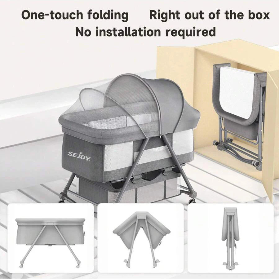 Sejoy 3 in 1 Rocking Crib Baby Bassinet Newborn Beside Sleeper Infant Sleeping Bed Convertible Anti-mosquito Foldable Portable