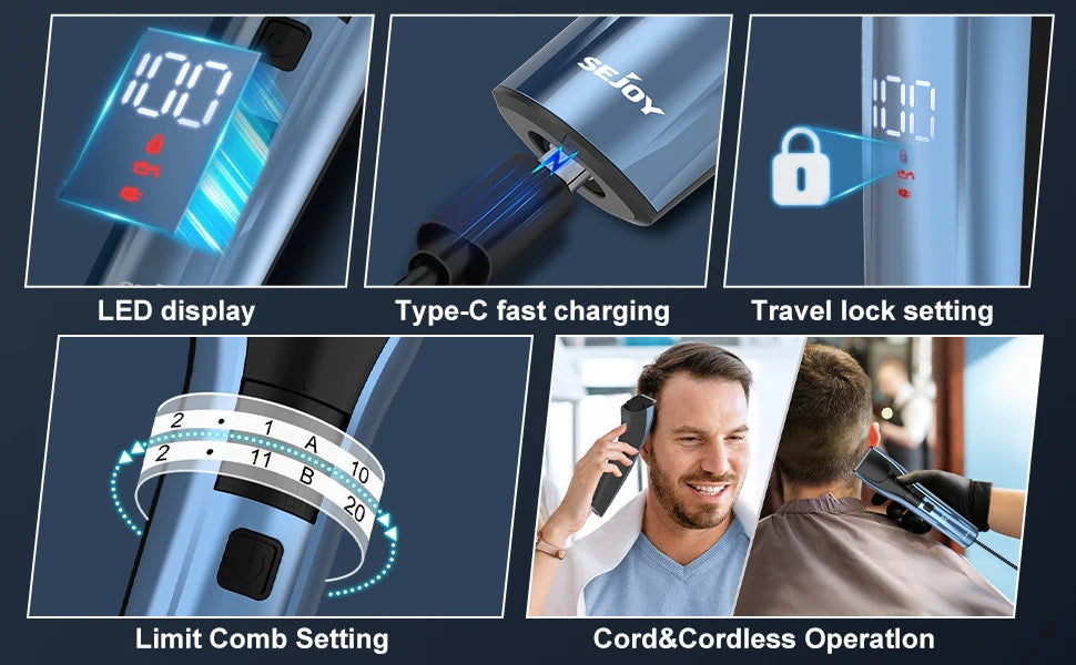 Sejoy Hair Trimmer Electric for Men Women rechargeable LED Display Hair Clipper Beard Shaving Body Trimmer Professional Barber