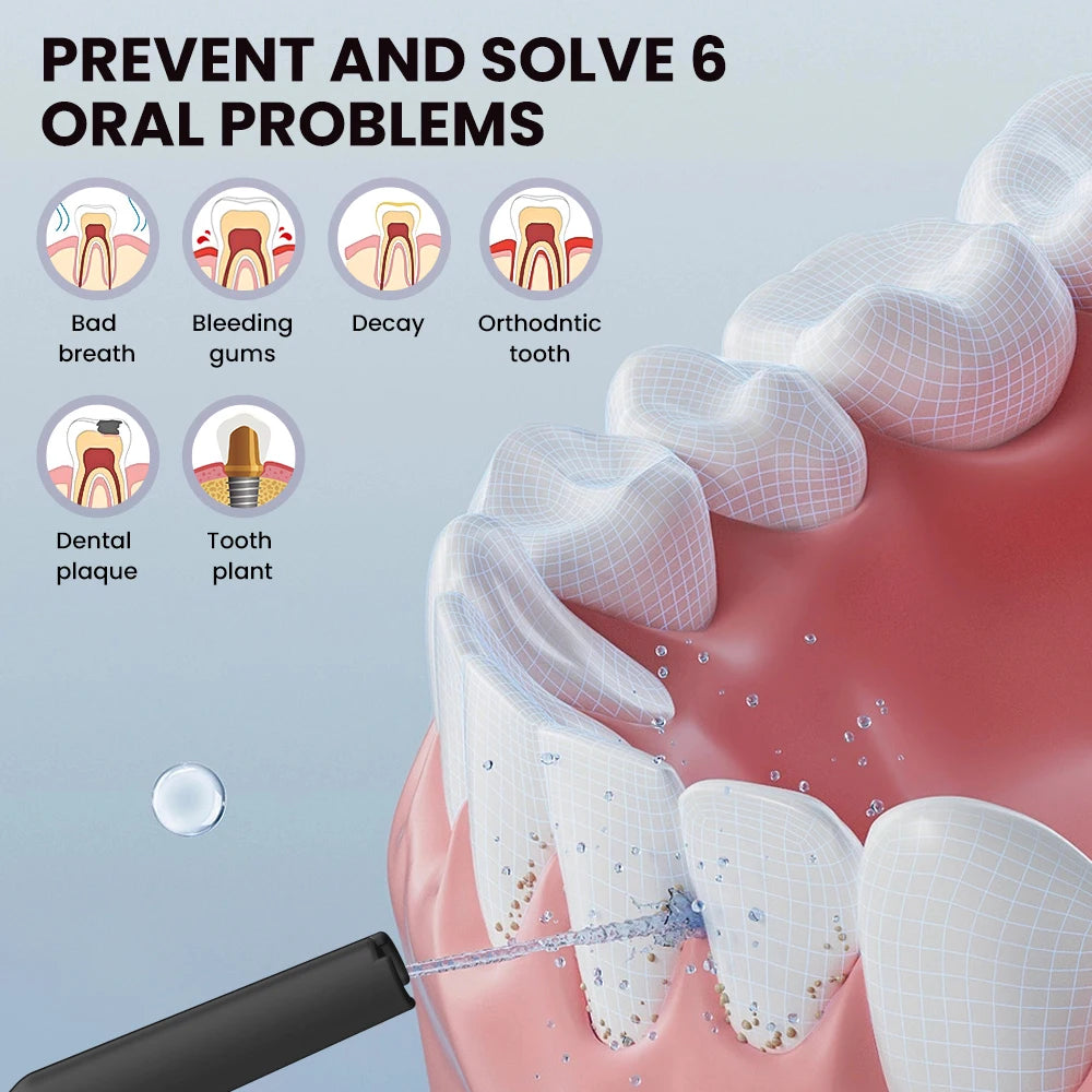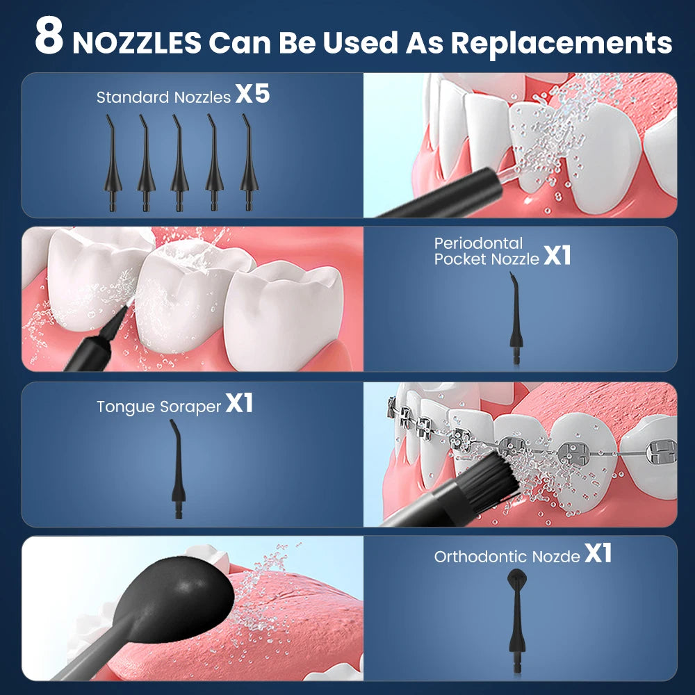 Sejoy Water Dental Flosser Oral Irrigator 8 Jet Tips 5 Modes IPX7 Waterproof Portable Cordless Teeth Cleaner for Home&Travel