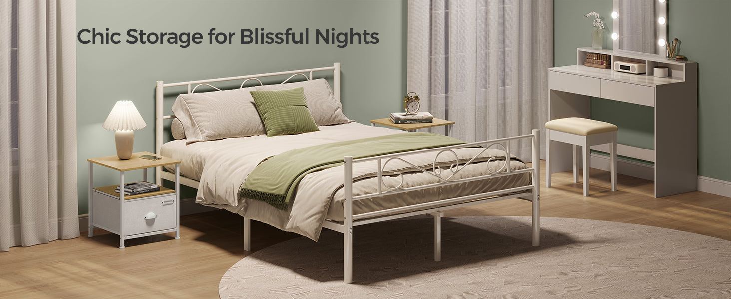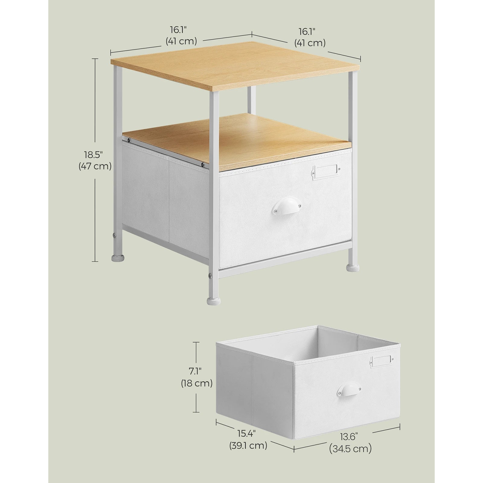 SONGMICS Nightstand, Bedside Table with Storage, Fabric Drawer Dresser, End Table with 2 Shelves, Modern Style