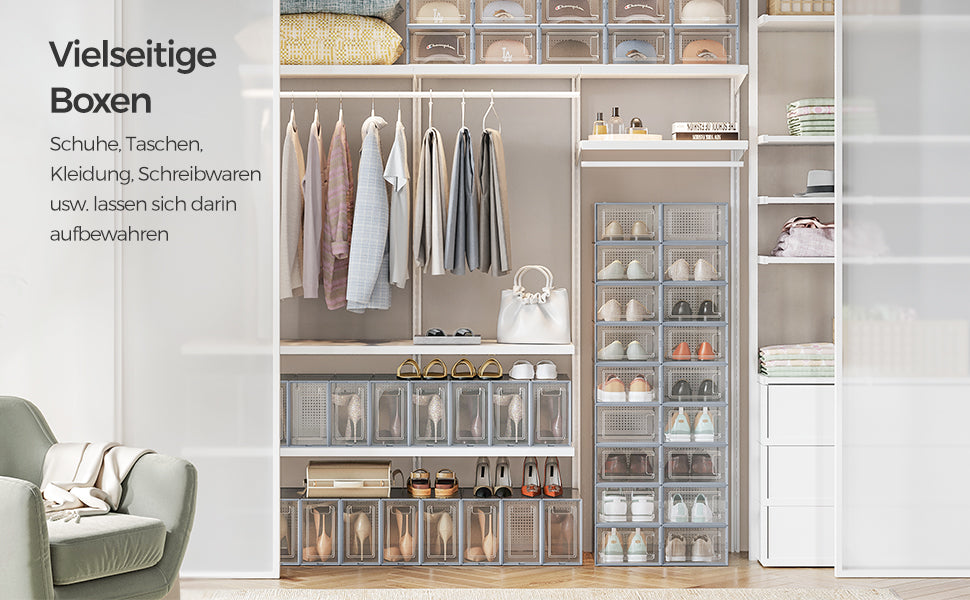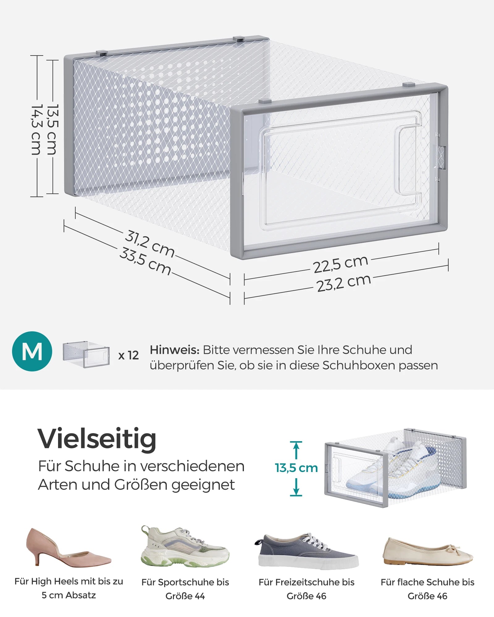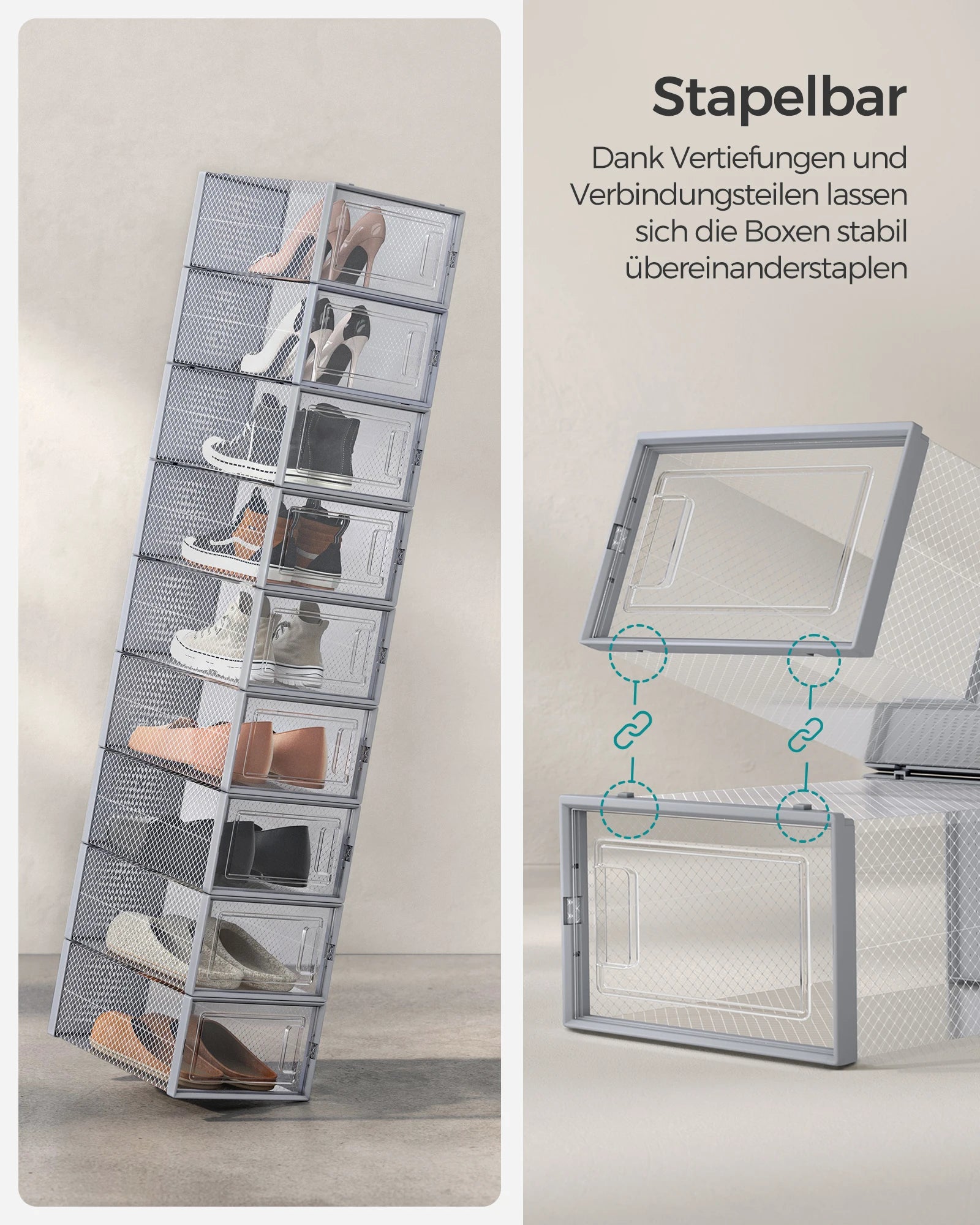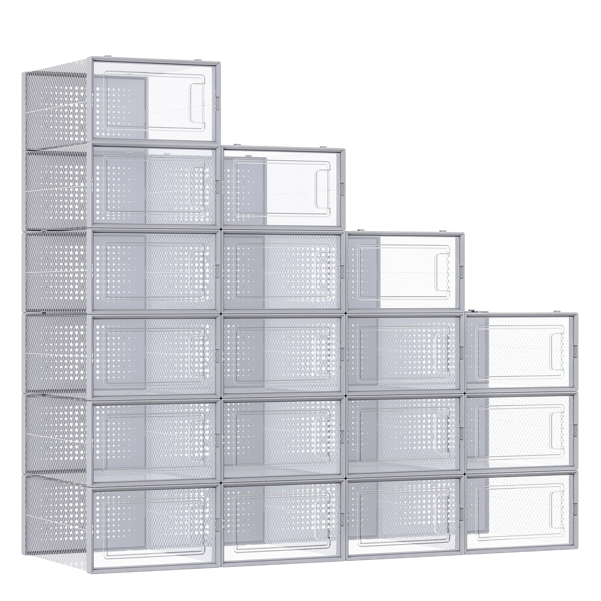 SONGMICS Set 18 Shoe Box Plastic Shoe Organizer for shoes up to size 44