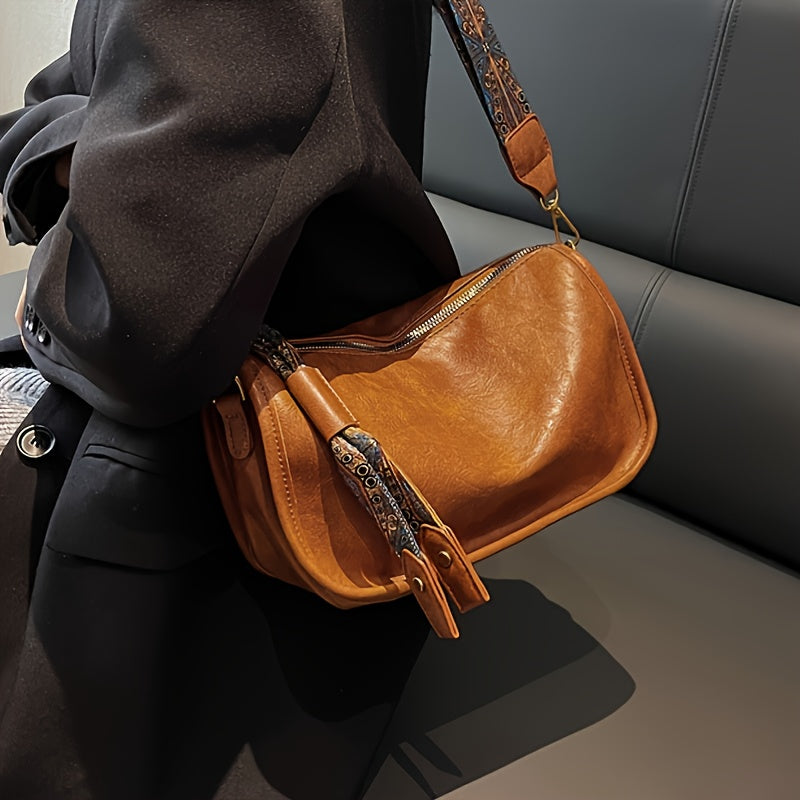 Stylish Large Capacity Crossbody Bag - Graphic Pattern Zipper Shoulder Bag With Wide Strap - Daily Purse