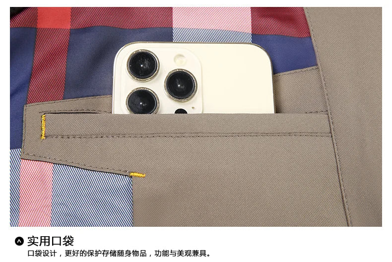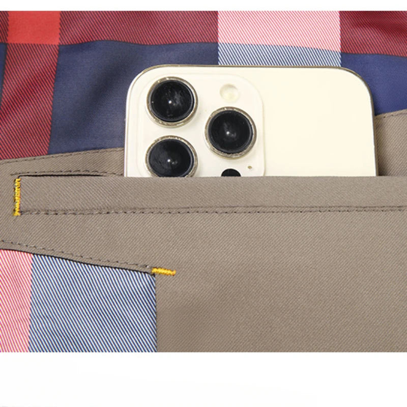 Step into timeless style with our Men’s Trench Coat, designed for both business and casual wear. Crafted from high-quality polyester with a smooth lining, this lightweight jacket offers comfort and sophistication for spring and autumn seasons. Featuring a lapel collar, single-breasted closure, and multiple pockets, it blends modern smart-casual fashion with classic tailoring. Available in versatile khaki and navy blue, this trench coat is perfect for office, travel, or everyday wear. Stay sharp and confident with a jacket that combines function, fashion, and youth-inspired design.