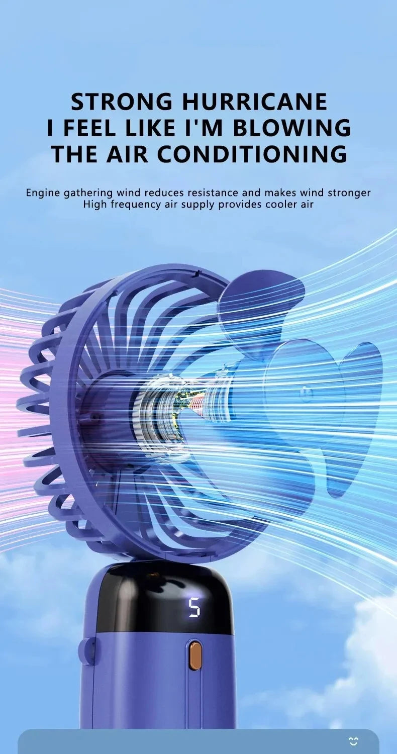 USB Handheld Mini Fan Foldable Portable Neck Hanging Fans 5 Speed USB Rechargeable Fan with Phone Stand and Display Screen
